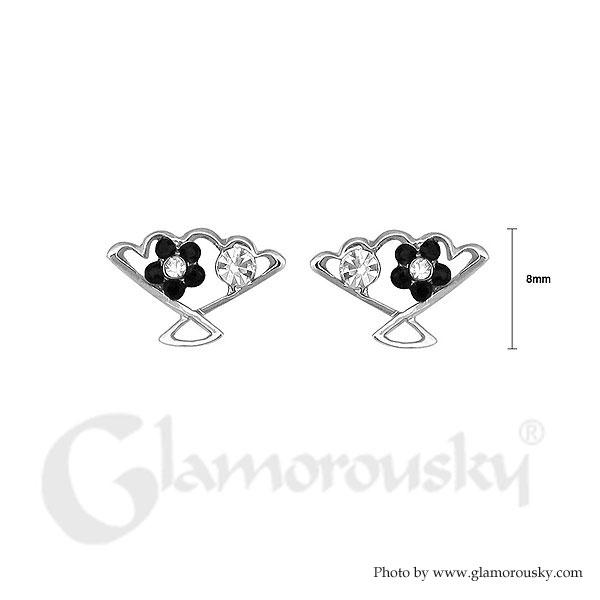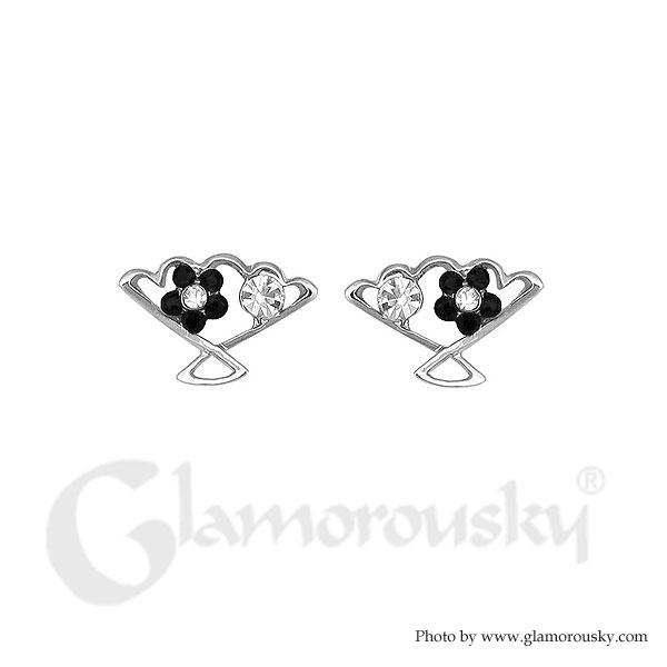 Chic fan-shaped Earrings with Silver and Black Austrian Element Crystals