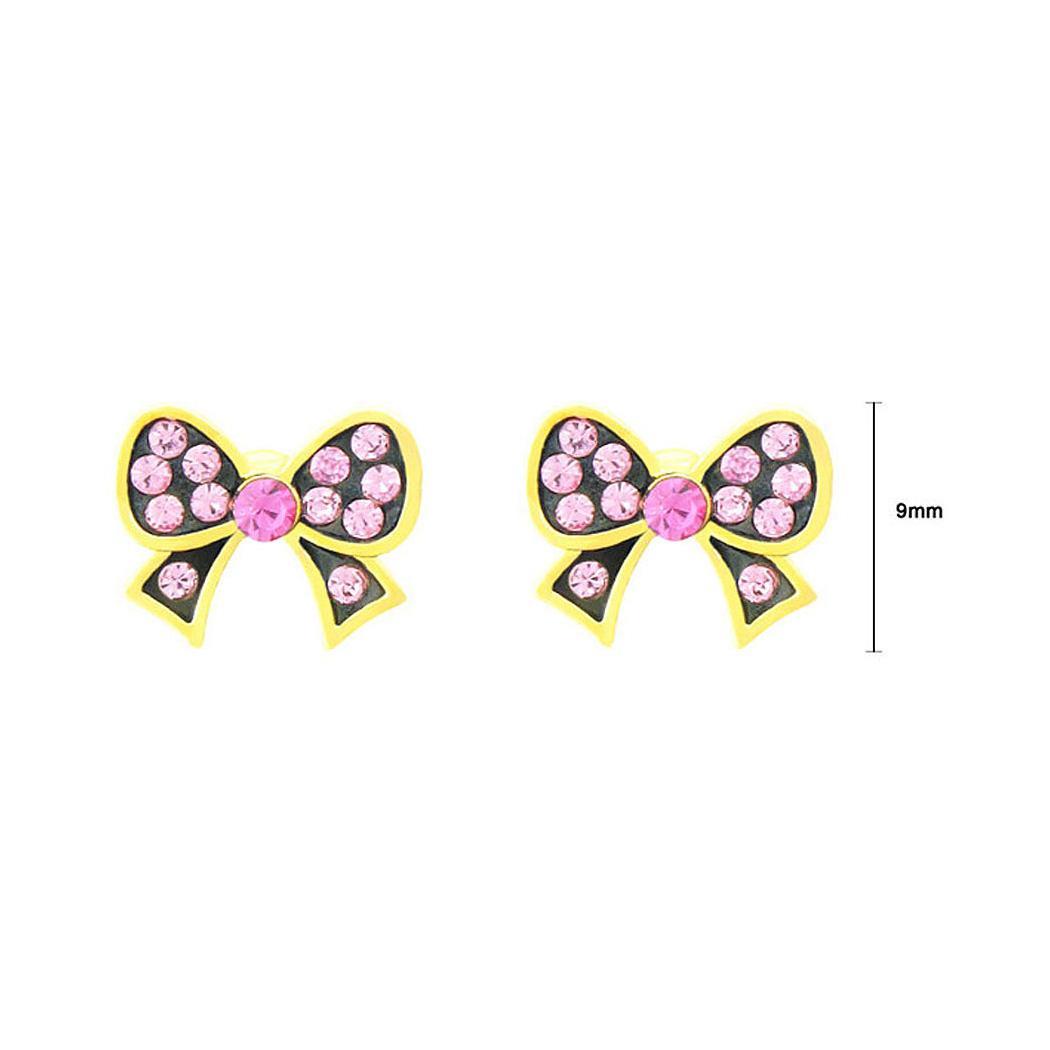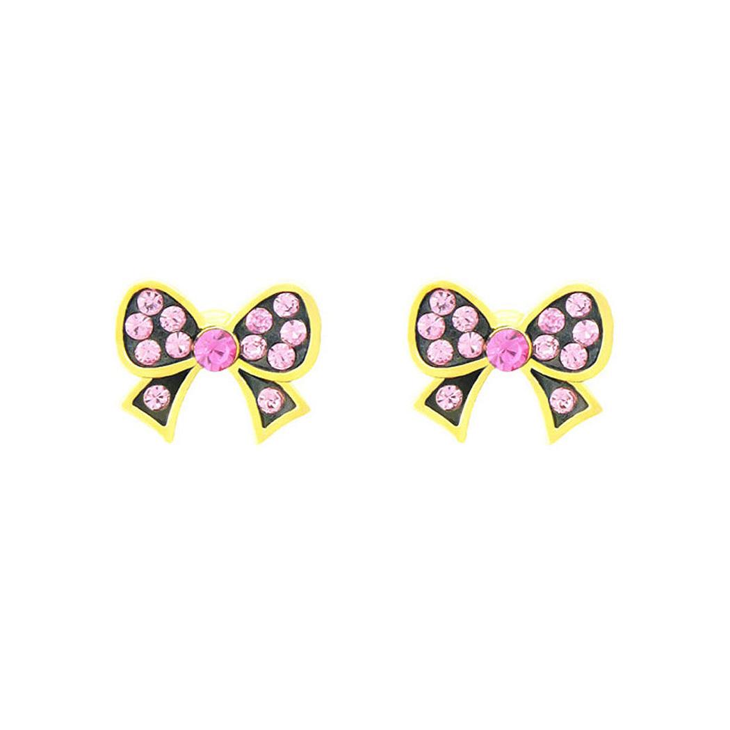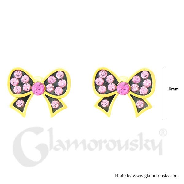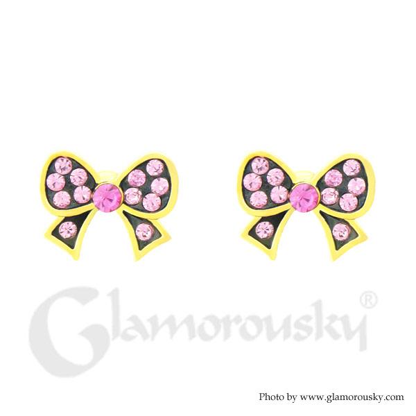 Lovely Ribbon Earrings with Pink Austrian Element Crystal