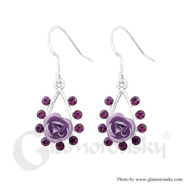 Romantic Rose Earrings with Purple Austrian Element Crystal