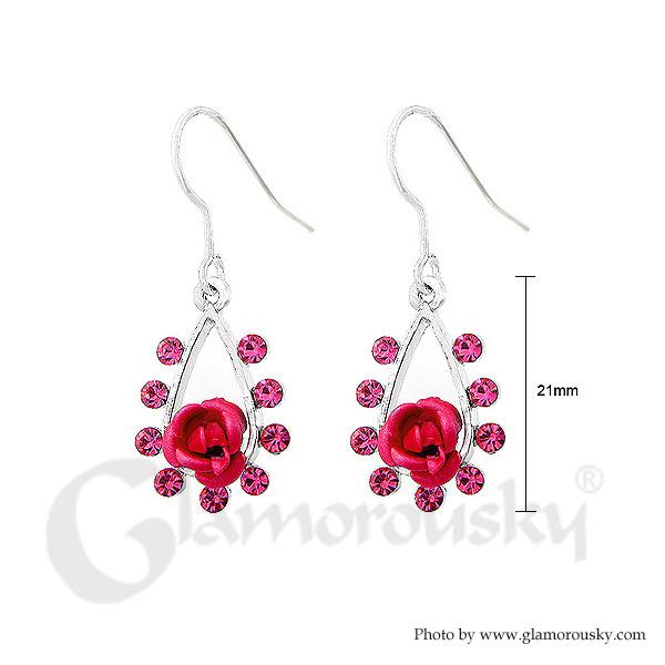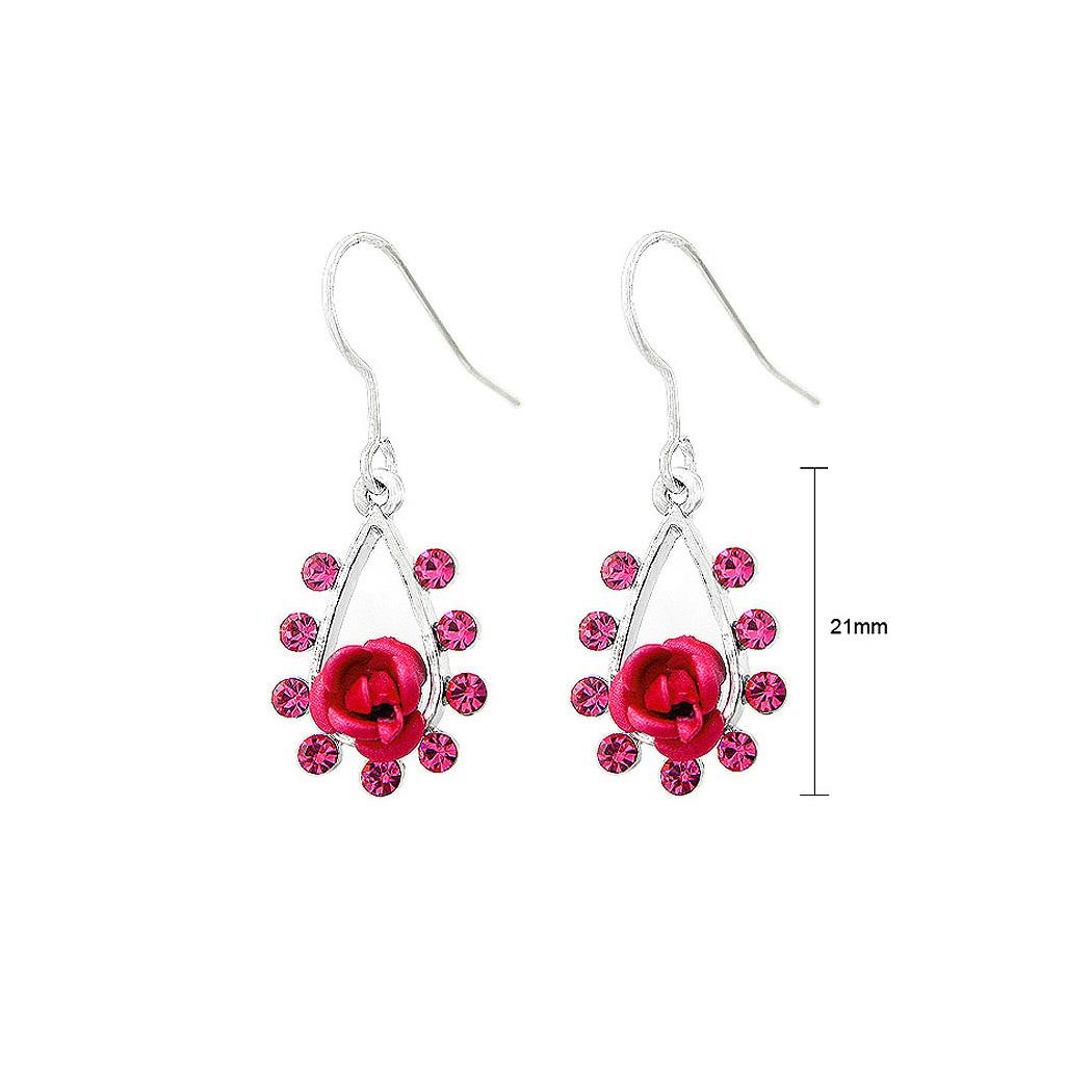 Romantic Rose Earrings with Pink Austrian Element Crystal