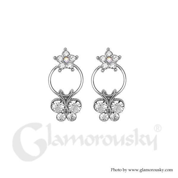 Lovely Butterfly Earrings with Silver Austrian Element Crystals