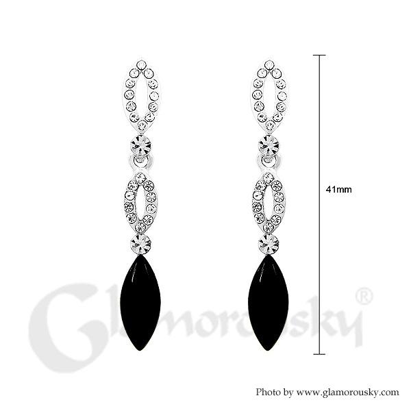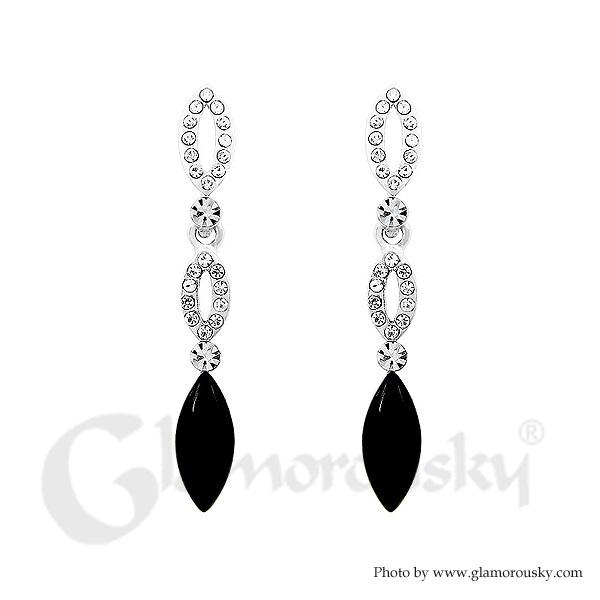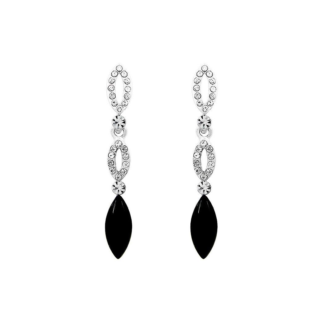 Elegant Marquise Earrings with Silver and Black Austrian Element Crystals