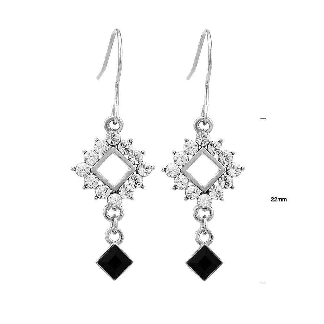 Simple Square Earrings with Silver and Black Austrian Element Crystals