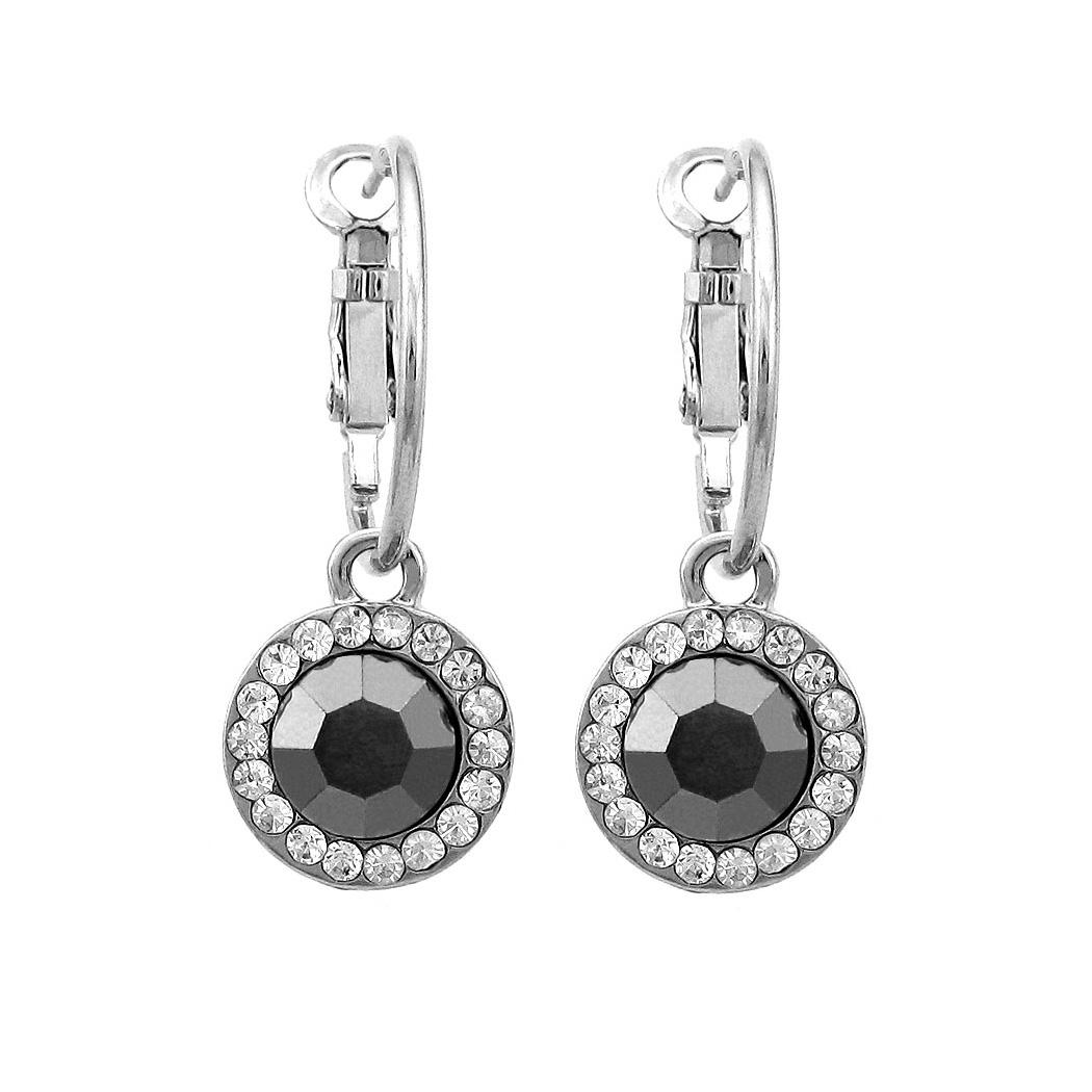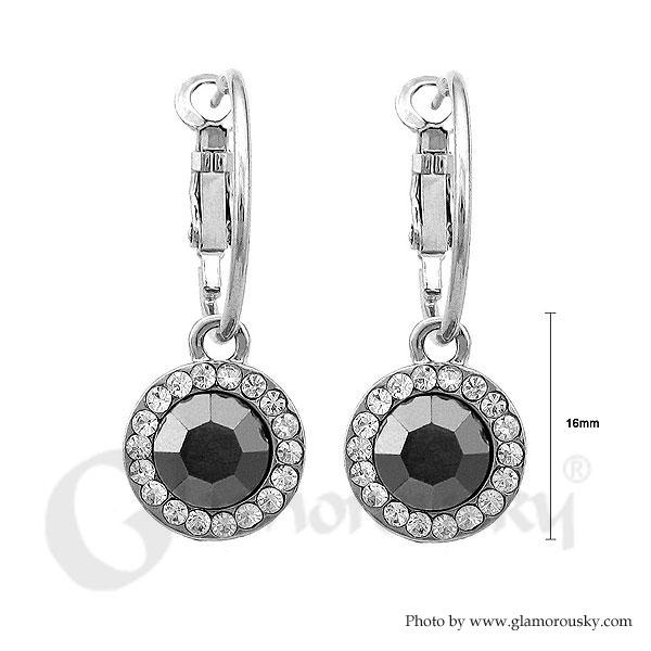 Dazzling Round Earrings with Silver and Black Austrian Element Crystals