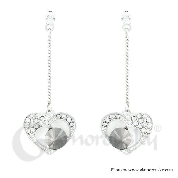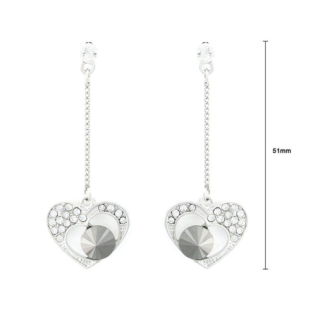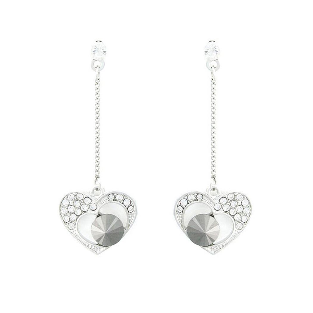 Elegant Heart Earrings with Silver and Black Austrian Element Crystals