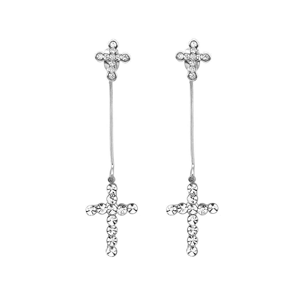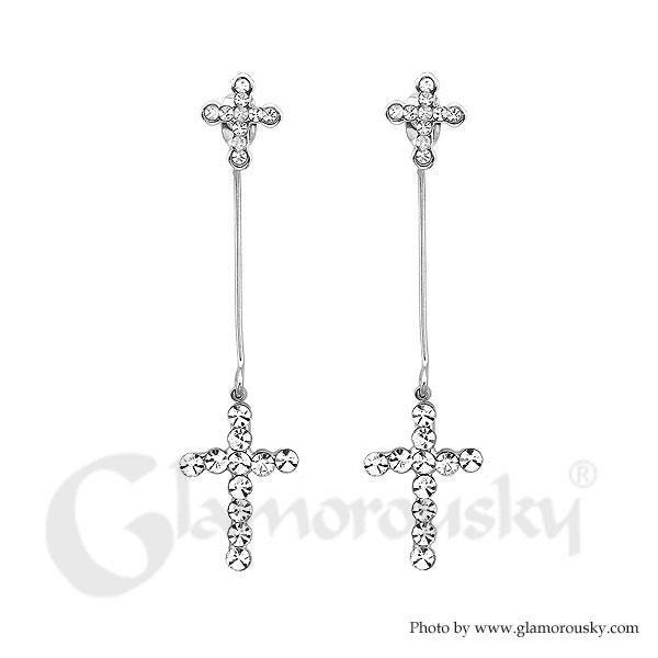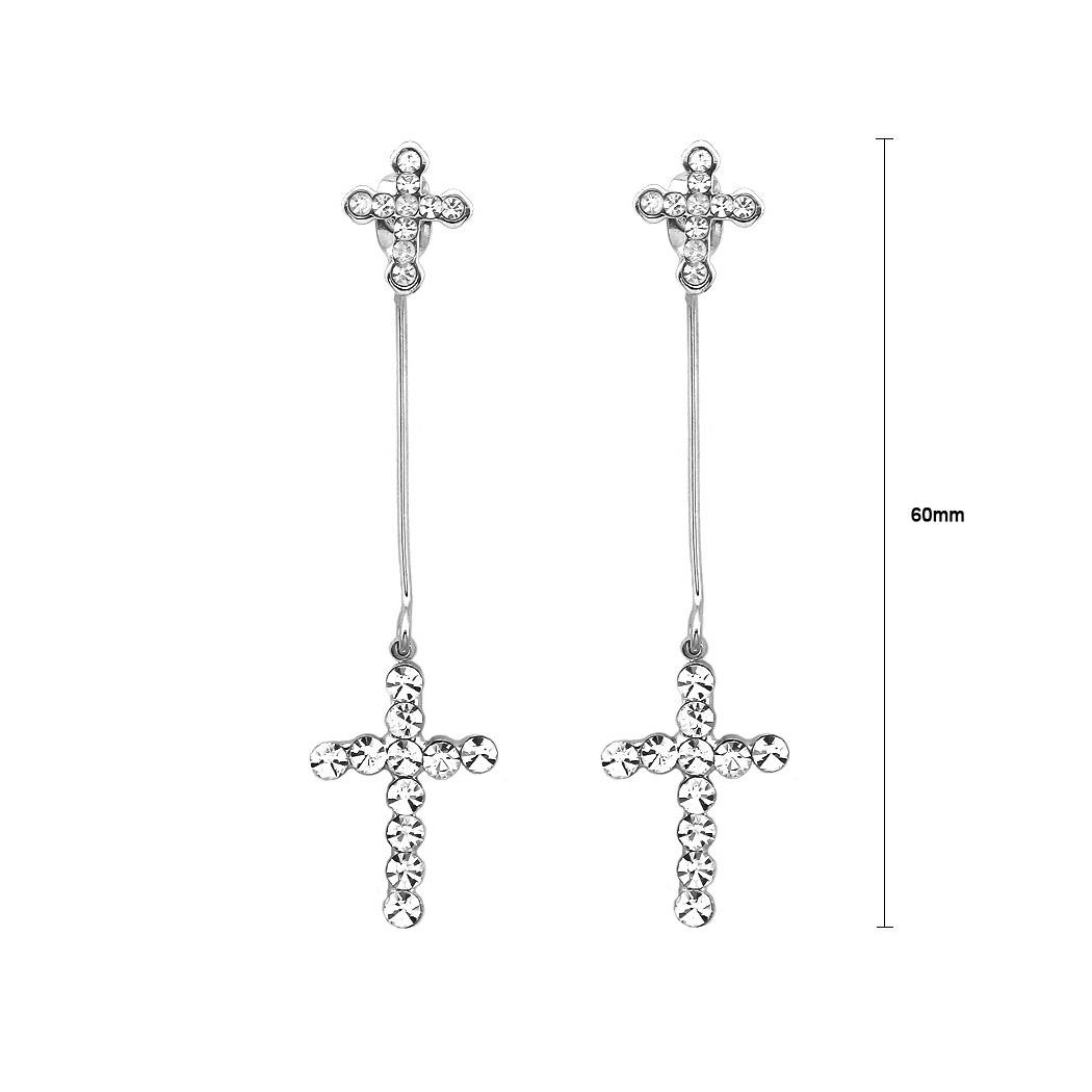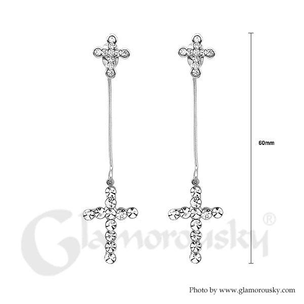 Elegant Cross Earrings with Silver Austrian Element Crystal