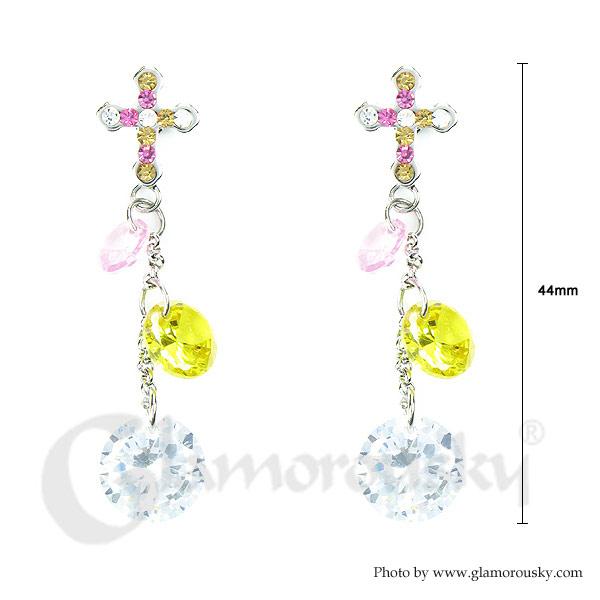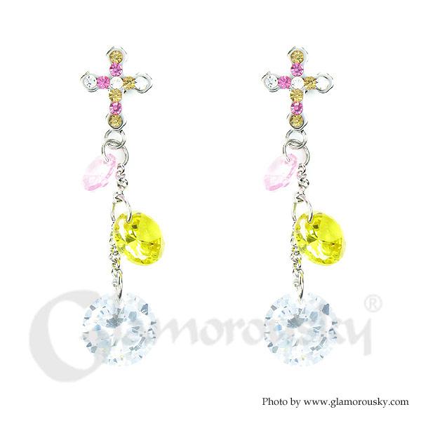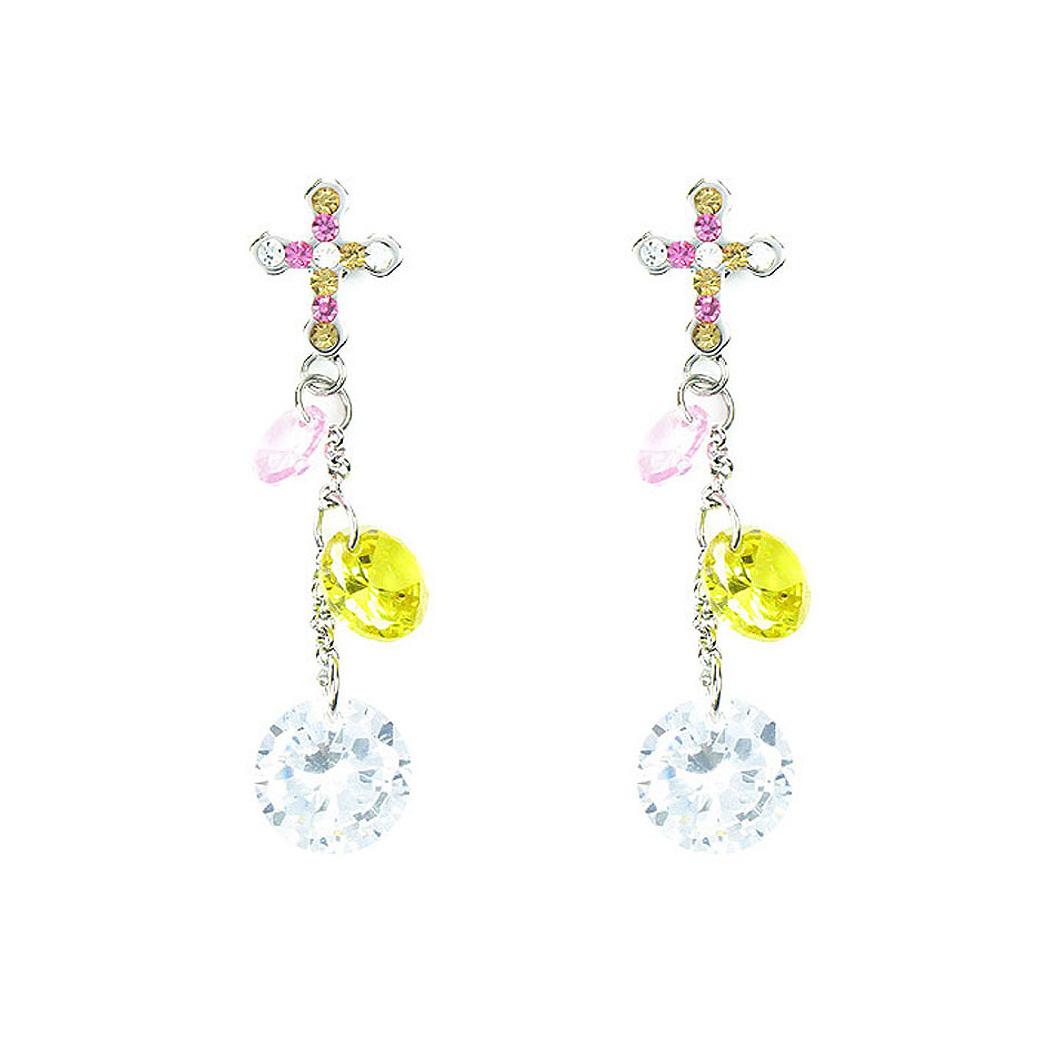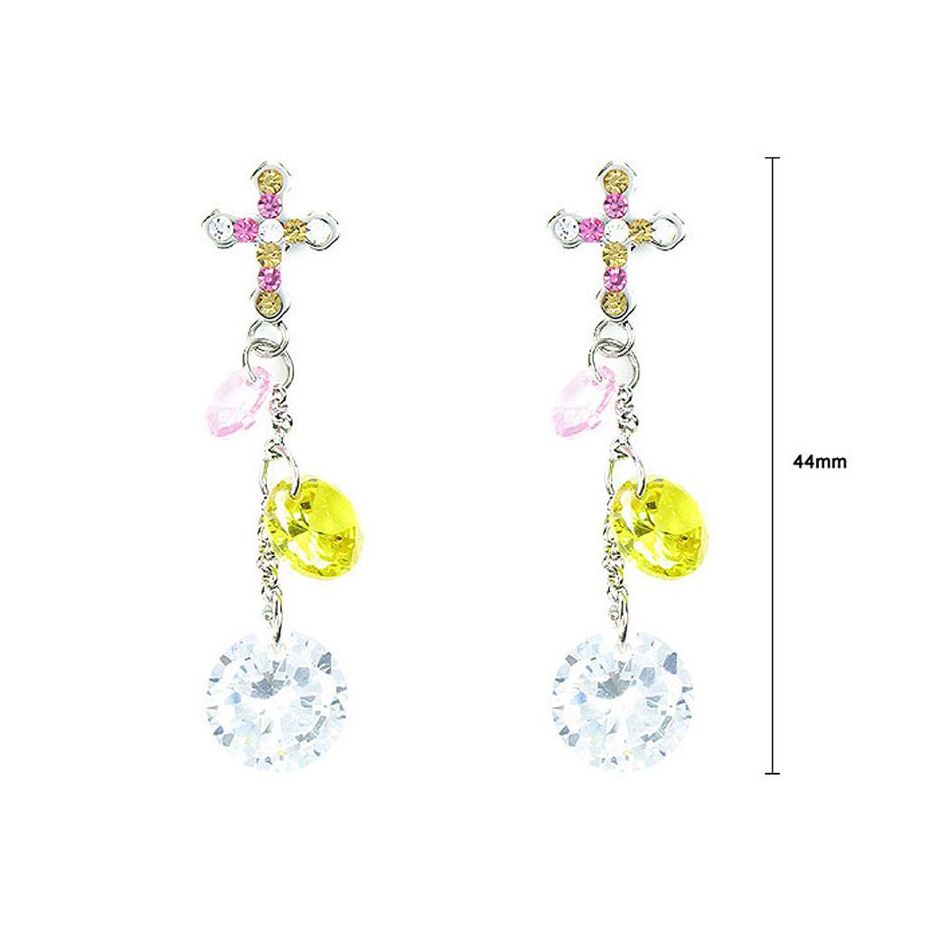 Lovely Cross Earrings with Multi-color Austrian Element Crystals