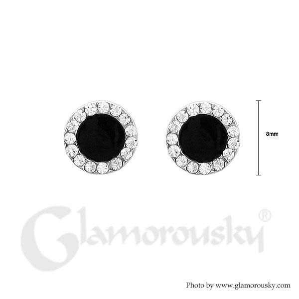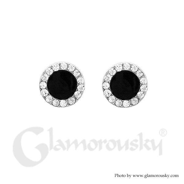 Black Round Earring with Silver Austrian Element Crystal