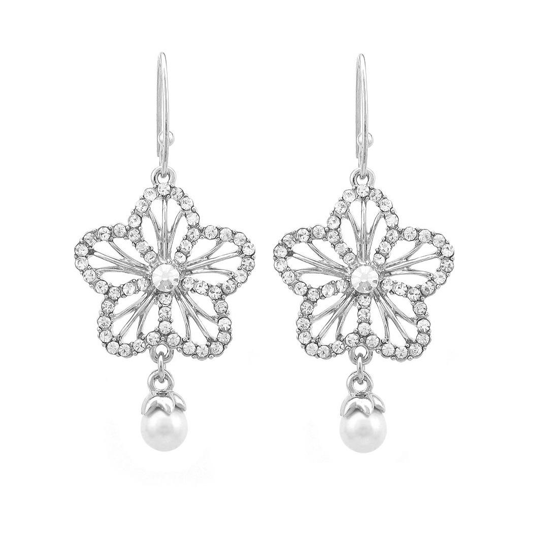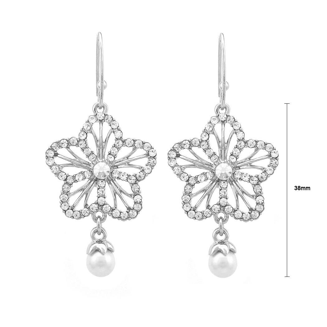 Graceful Earrings with Silver Austrian Element Crystal and White Fashion Pearl