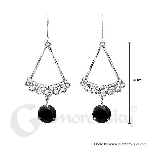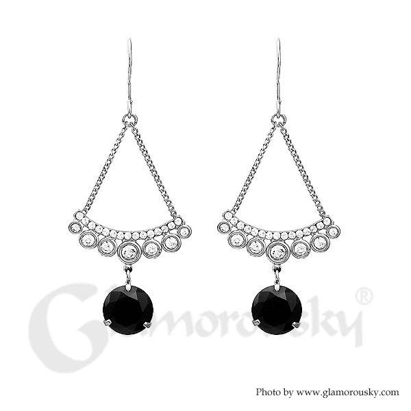 Sparkling Earrings with Silver and Black Austrian Element Crystals