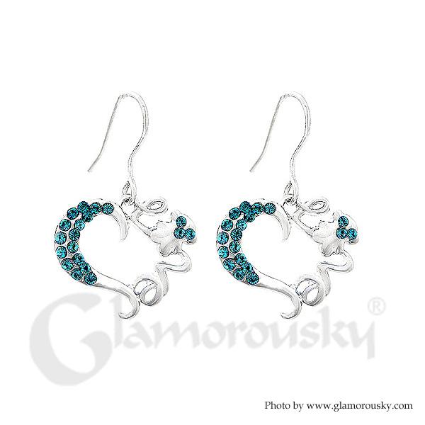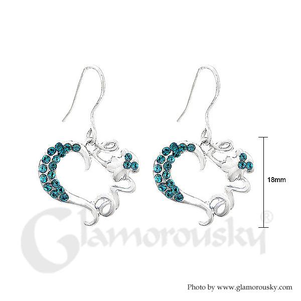 Lovely Heart Earrings with Blue Austrian Element Crystal