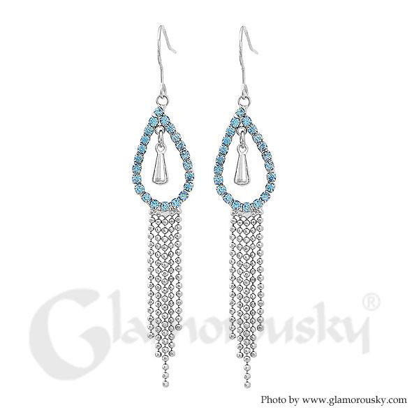 Category:Pair EarringsCollection:SimplismMetail:Silver-Plated Pewter(Silver)Stone:Austrian Crystal(Light Blue)