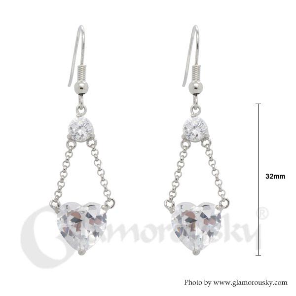 Lovely Heart Earrings with Silver Austrian Element Crystal