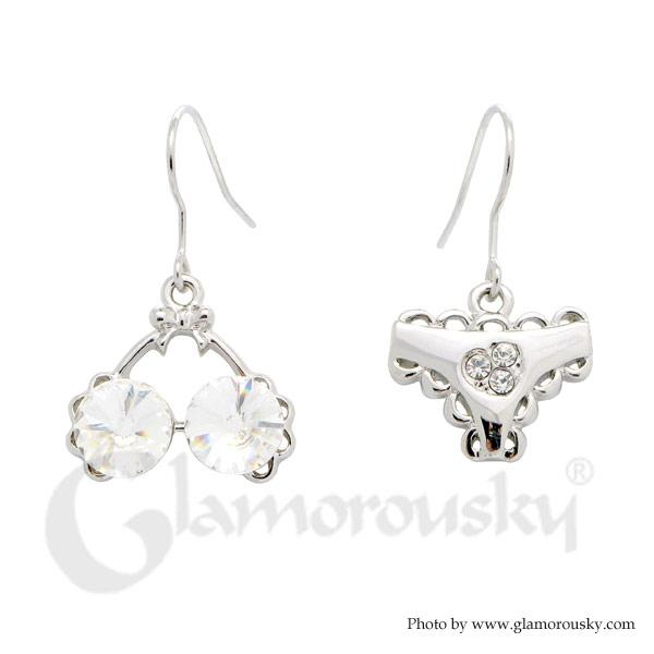 Cute Underwear Earrings with Silver Austrian Element Crystal