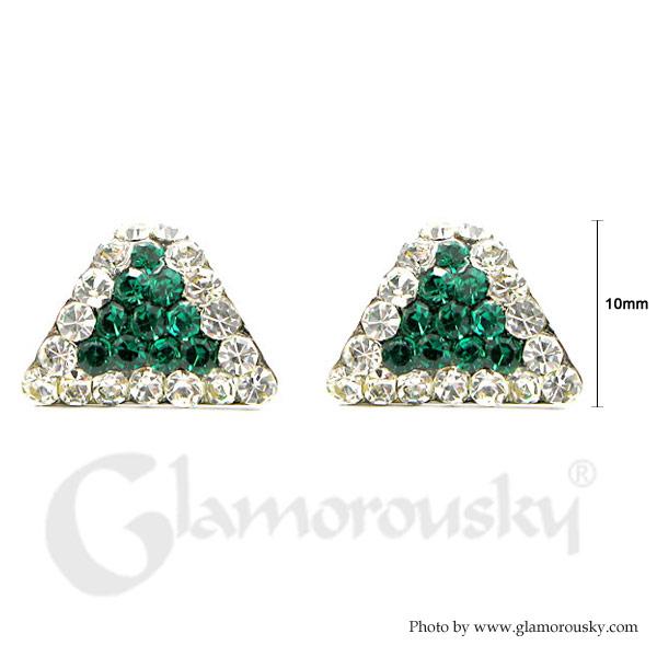 Simple Triangle Earrings with Silver and Dark Green Austrian Element Crystals