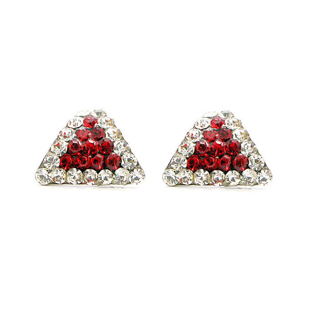 Simple Triangle Earrings with Silver and Red Austrian Element Crystals