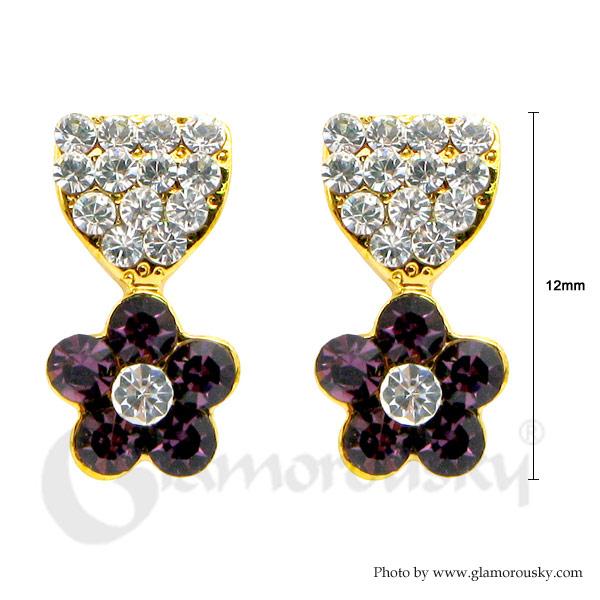 Lovely Flower Earrings with Silver and Purple Austrian Element Crystals