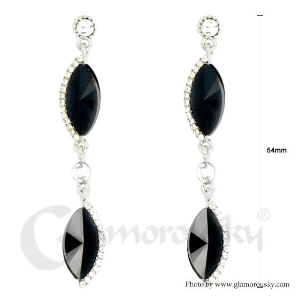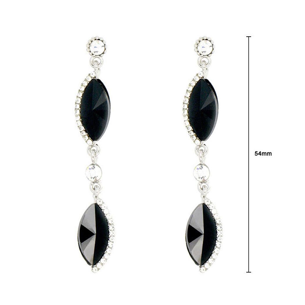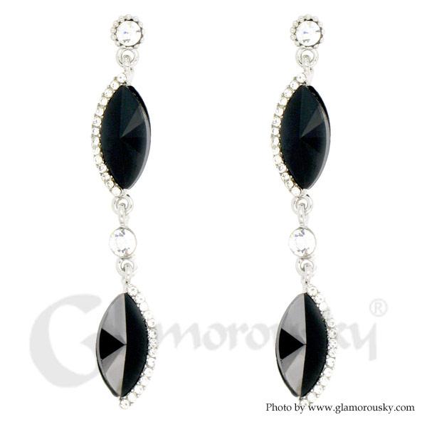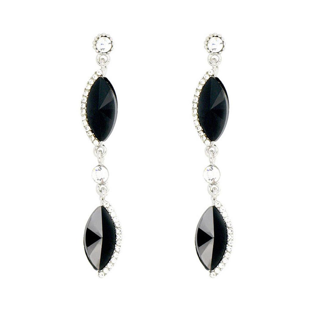 Graceful Marquise Earrings with Silver and Black Austrian Element Crystals