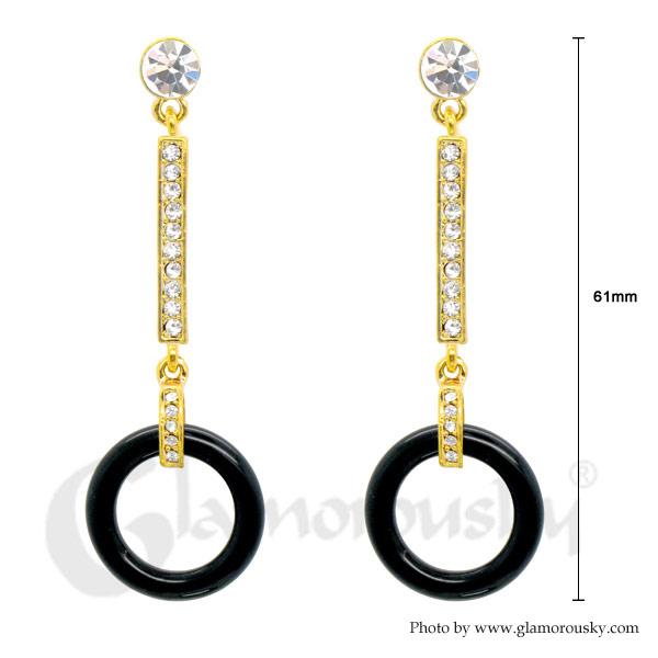 Graceful Round Earrings with Silver Austrian Element Crystal and Black Plastic Beads