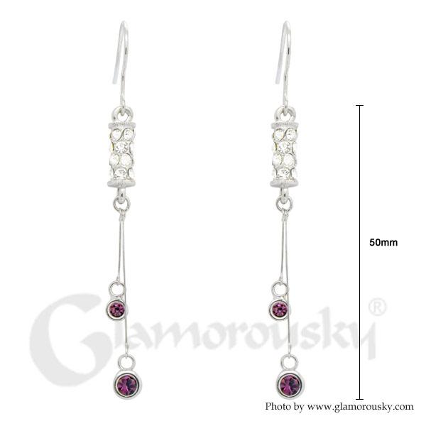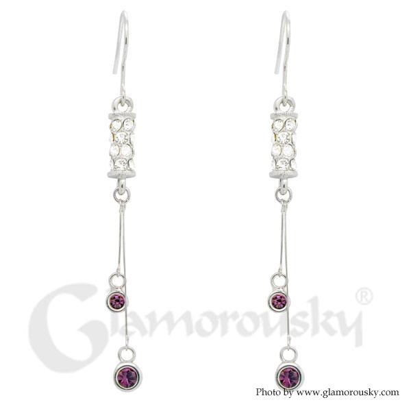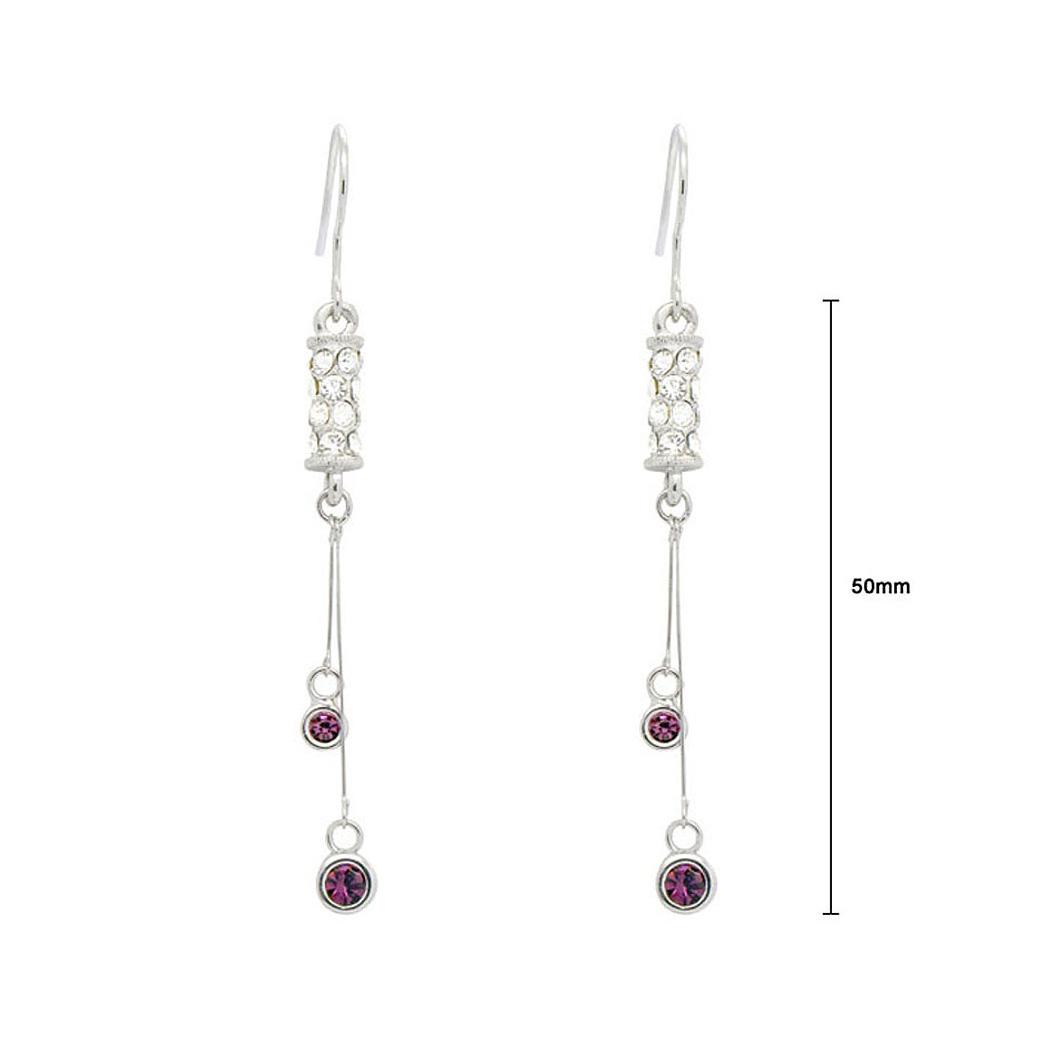 Elegant Cylindrical Earrings with Silver and Purple Austrian Element Crystals