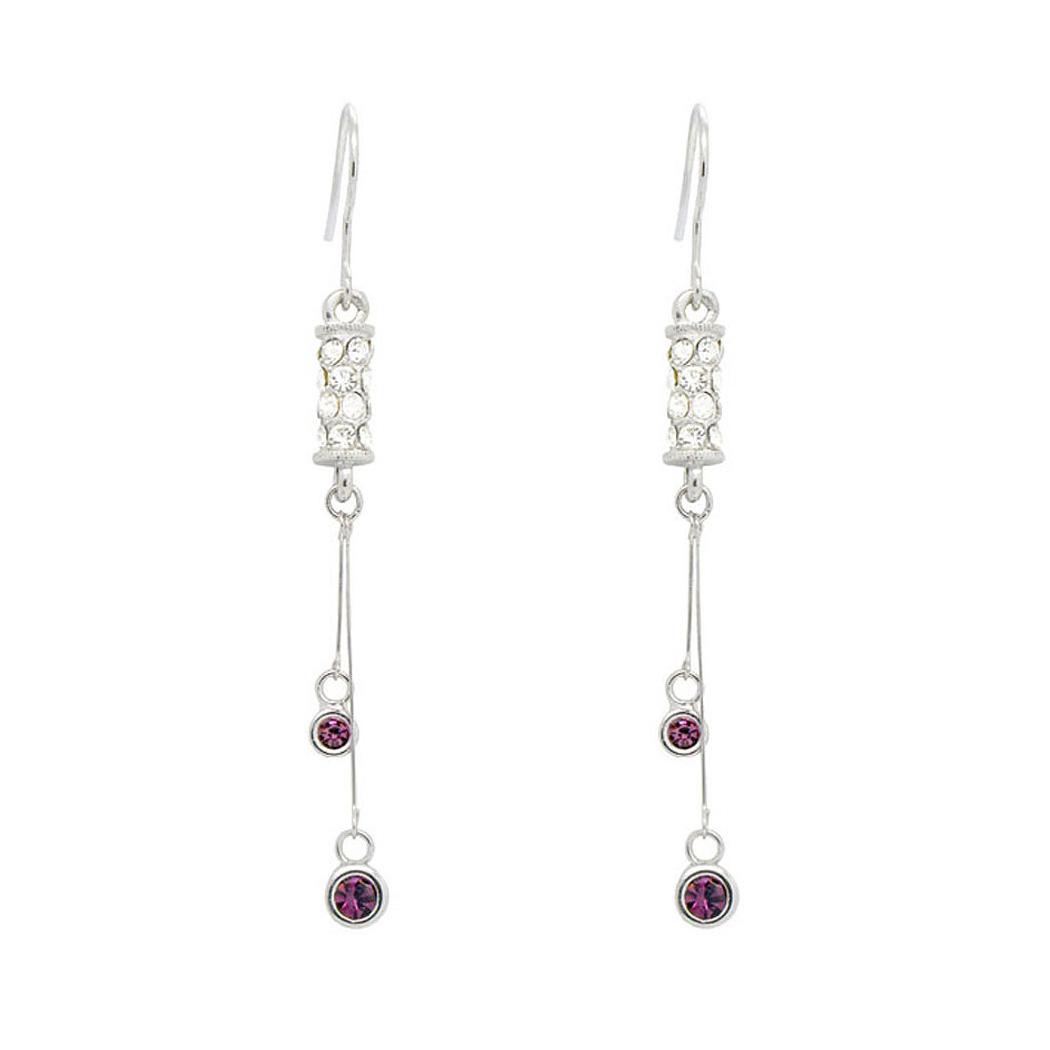 Elegant Cylindrical Earrings with Silver and Purple Austrian Element Crystals