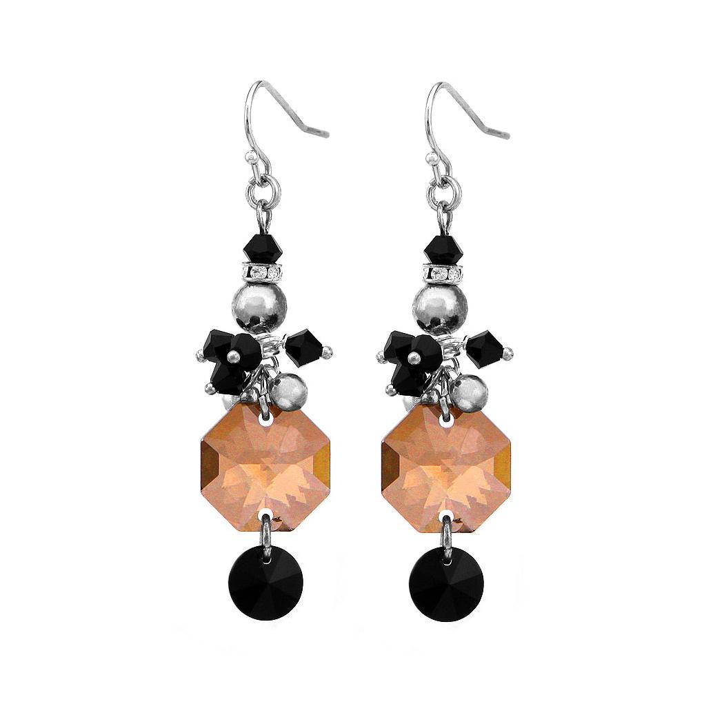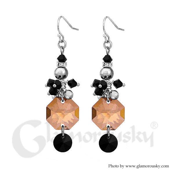 Elegant Octagon Earrings with Multi-color Austrian Element Crystals