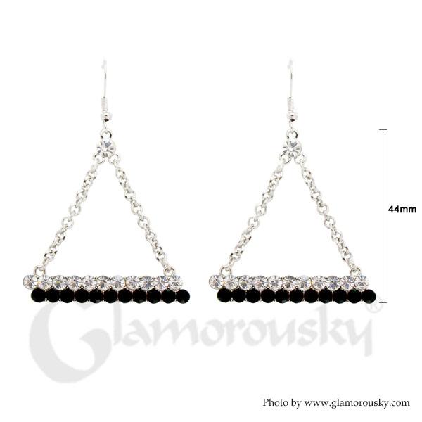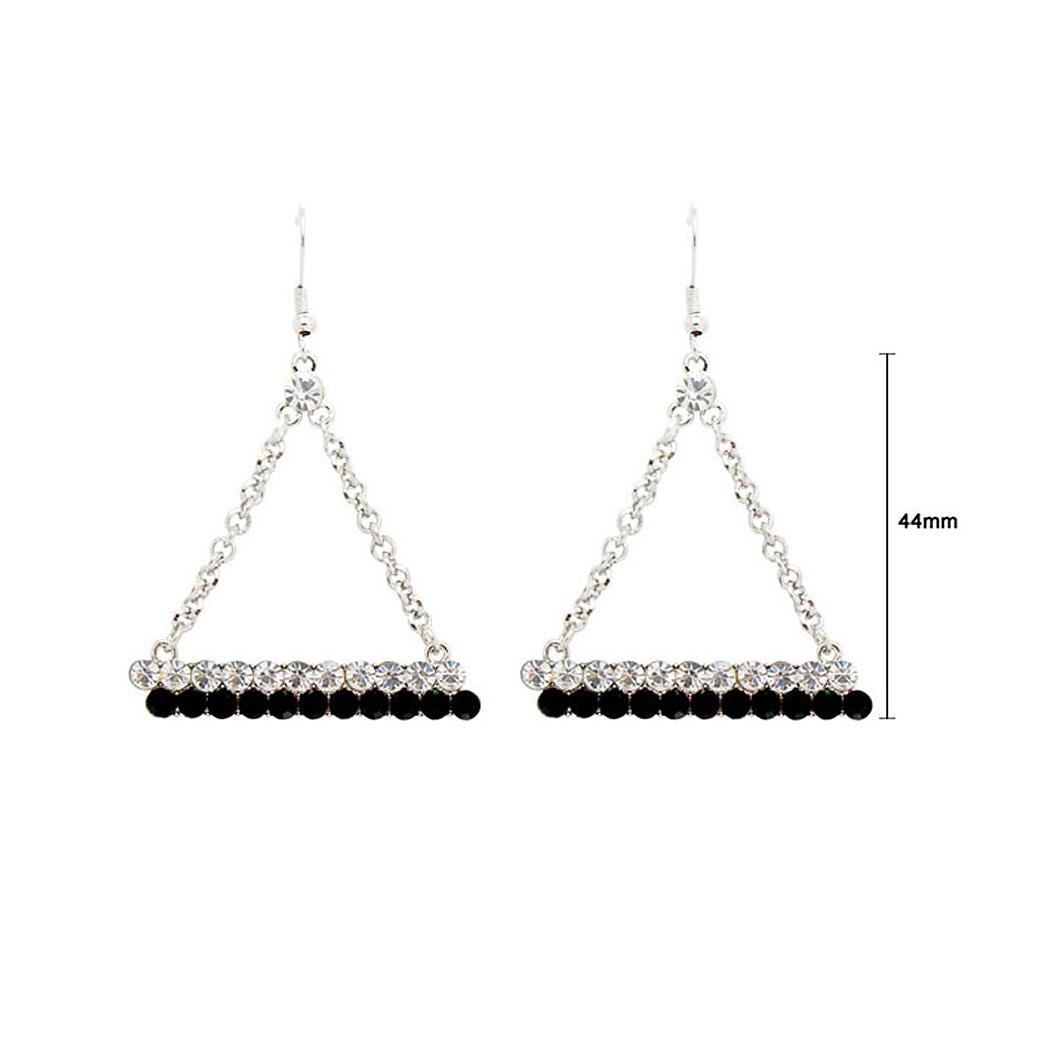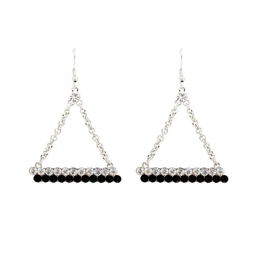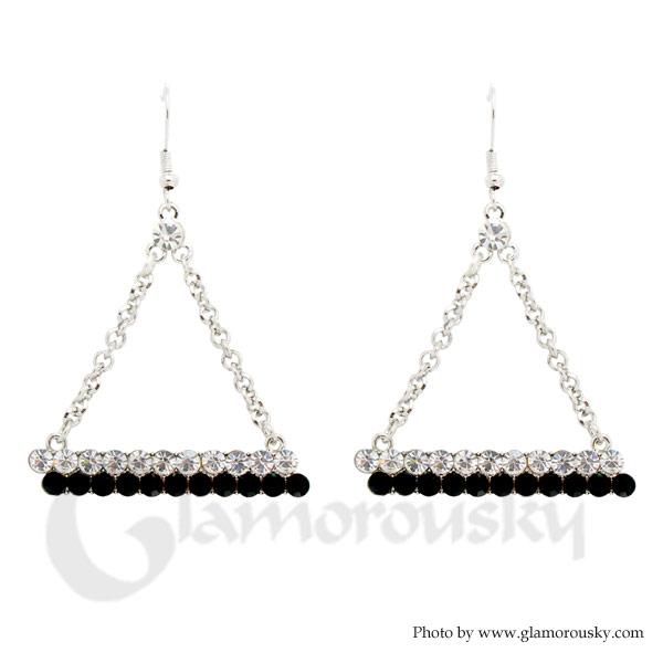 Elegant Triangle Earrings with Silver and Black Austrian Element Crystals