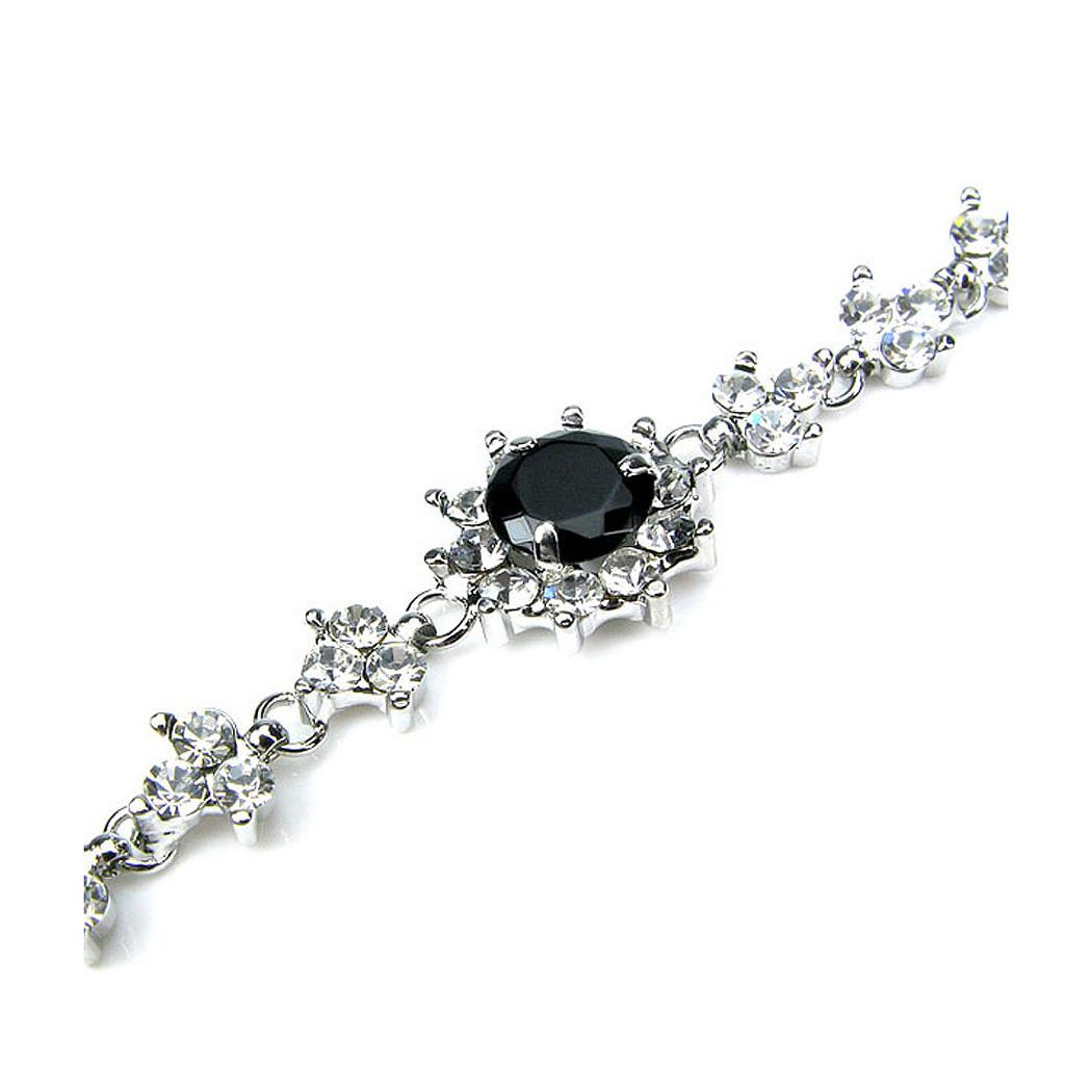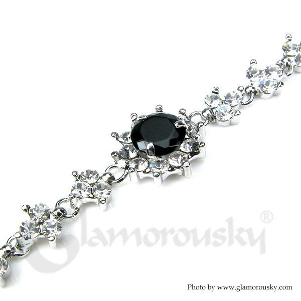 Elegant Flower Bracelet with Silver and Black Austrian Element Crystals