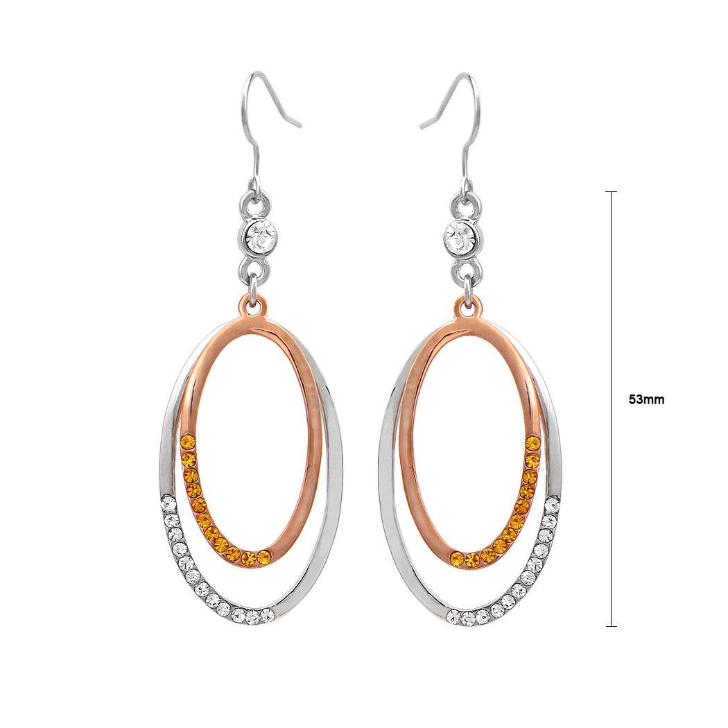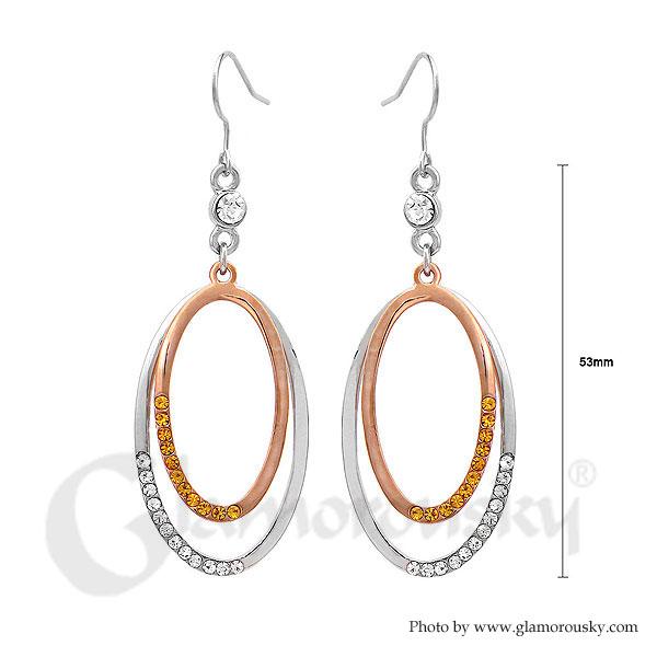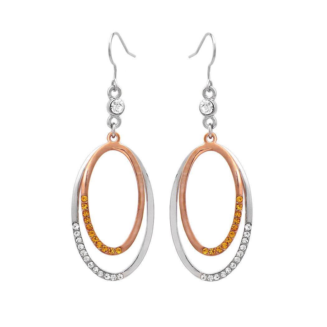 Simple Oval Earrings with Silver and Yellow Austrian Element Crystals