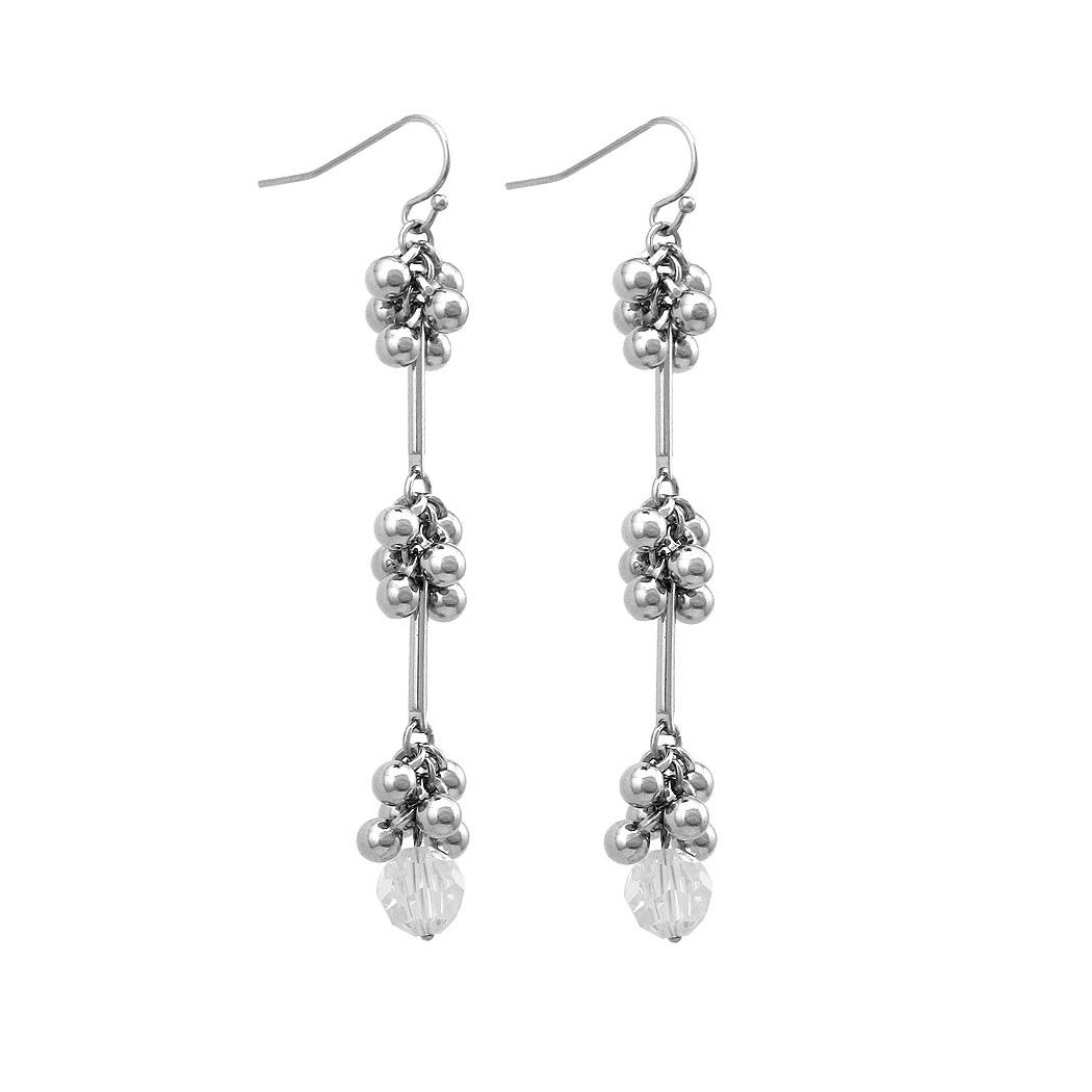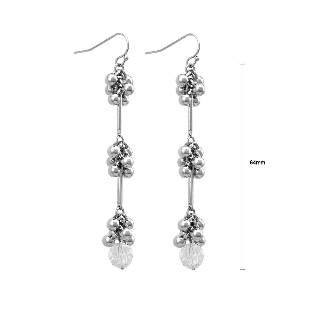 Simple Drop of Beads Earrings with Silver Austrian Element Crystal