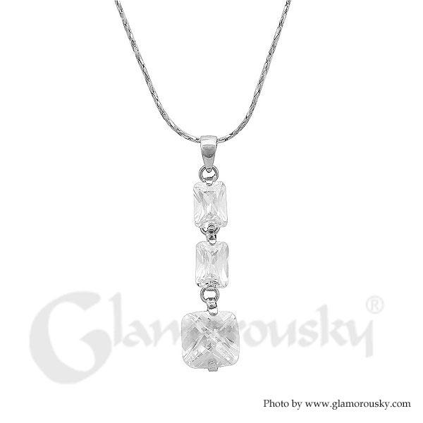 Graceful Princess-cut Necklace with Silver Austrian Element Crystal