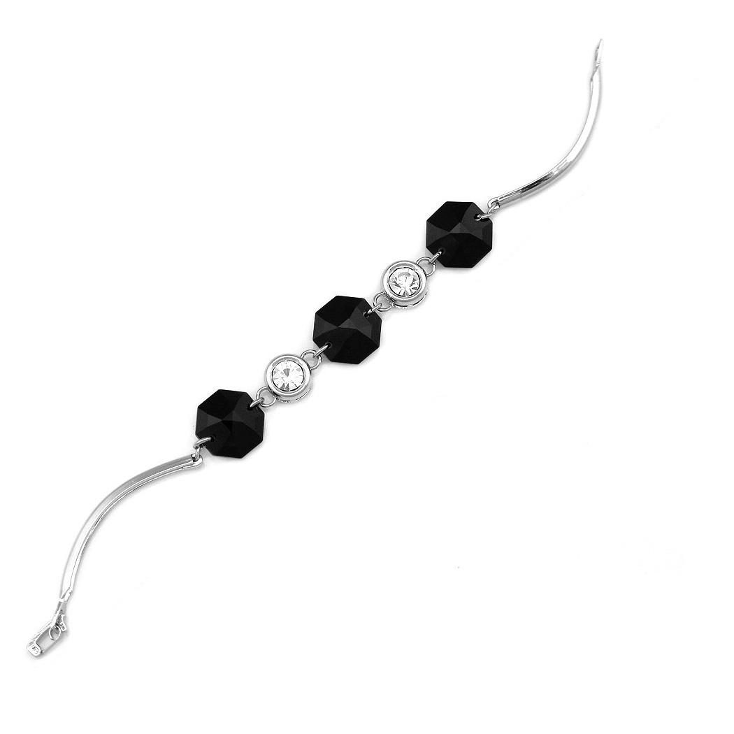 Simple Octagonal Bracelet with Silver and Black Austrian crystals