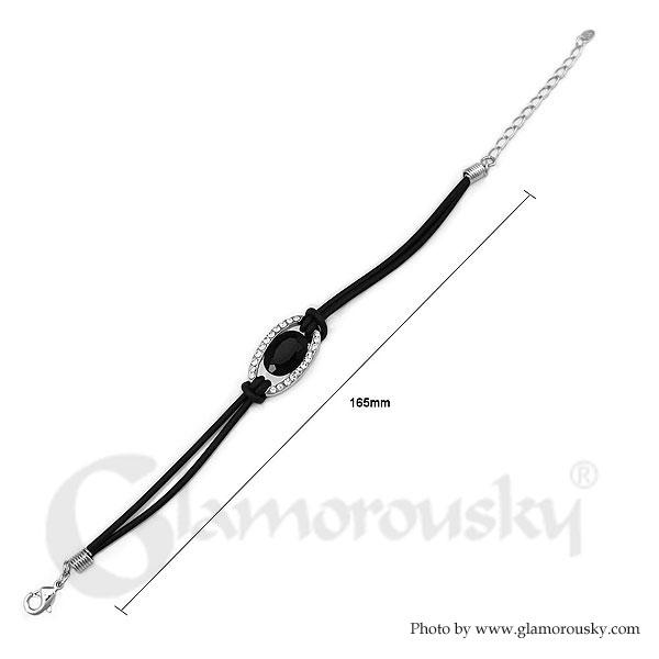 Simple Oval Bracelet with Silver and Black Austrian Element Crystals