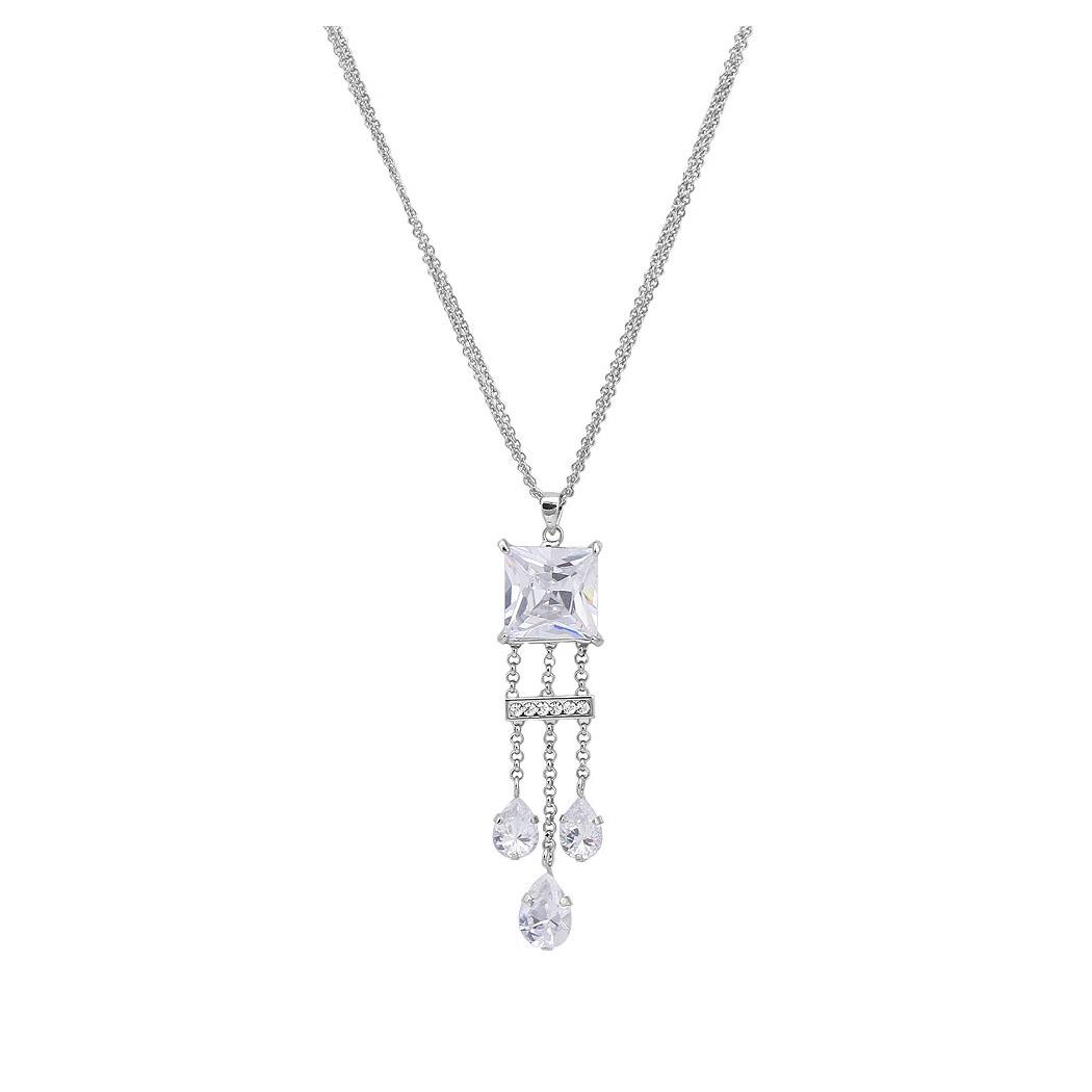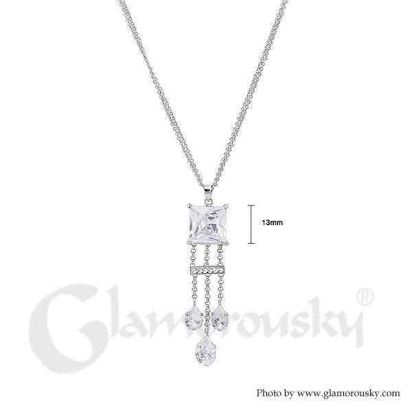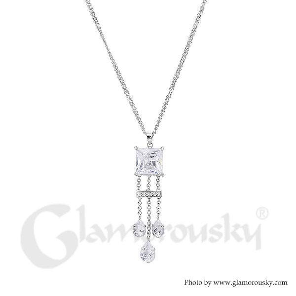 Chic Princess Cut Necklace with Silver Austrian Element Crystal