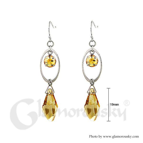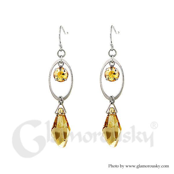 Vintage Oval Earrings with Yellow and Yellow Copper Austrian Element Crystals