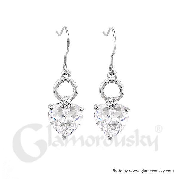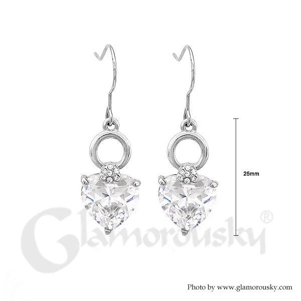 Lovely Heart Earrings with Silver Austrian Element Crystal