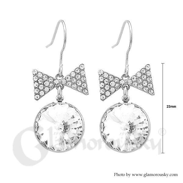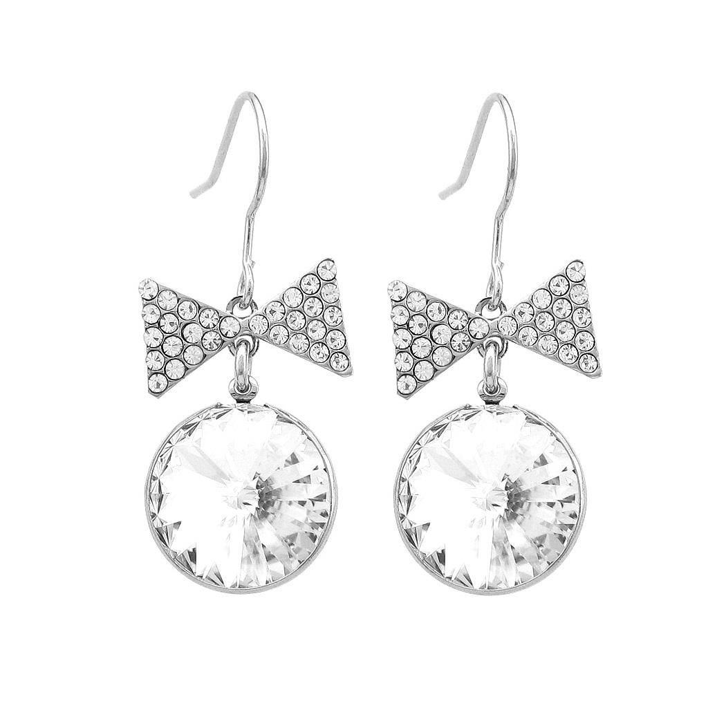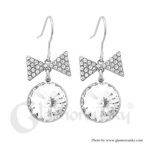Lovely Ribbon Earrings with Silver Austrian Element Crystal