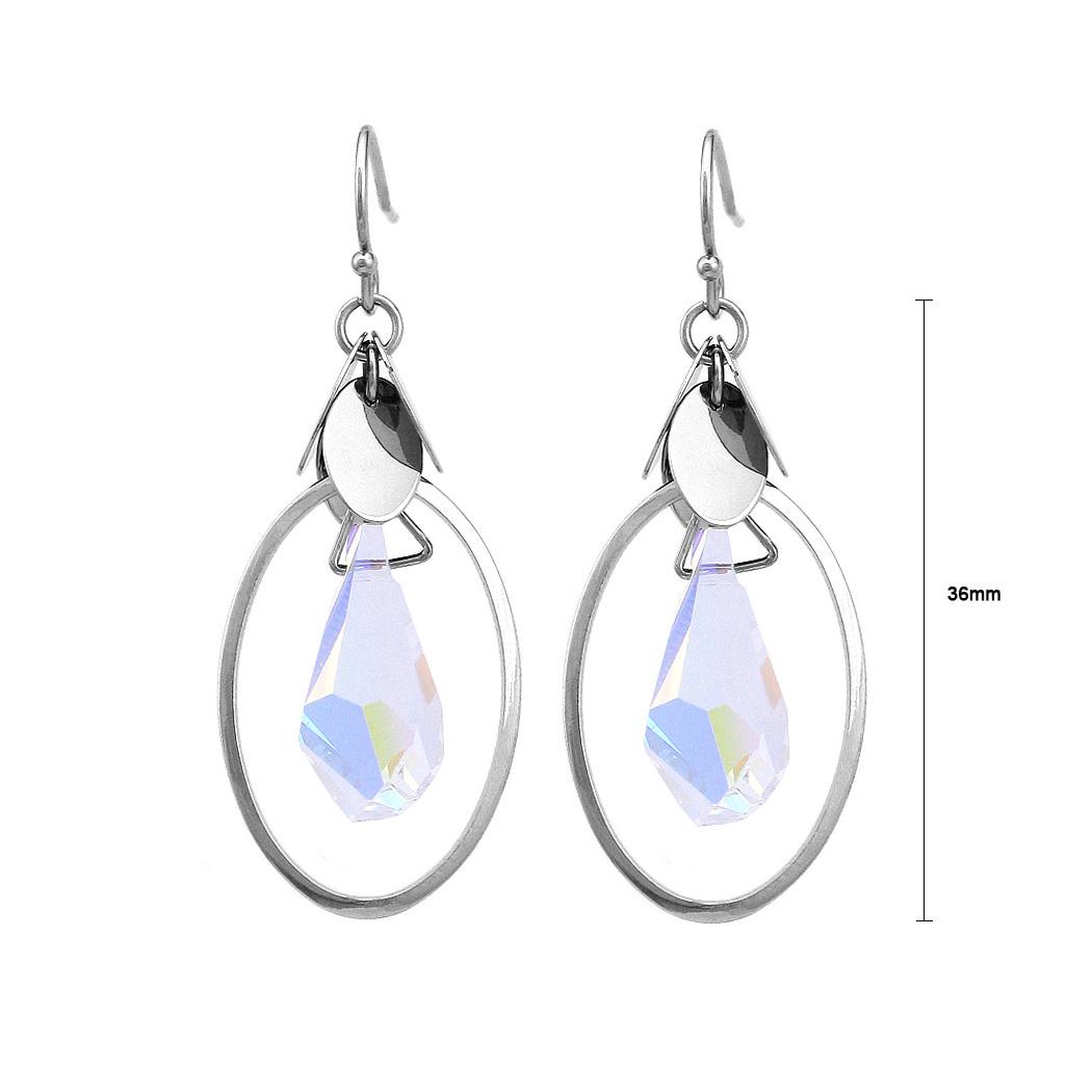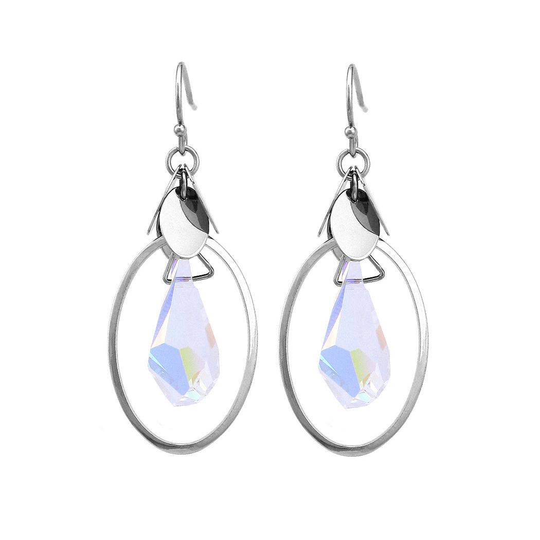 Simple Oval Earrings with Silver Austrian Element Crystal