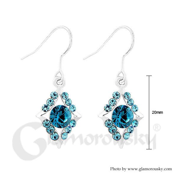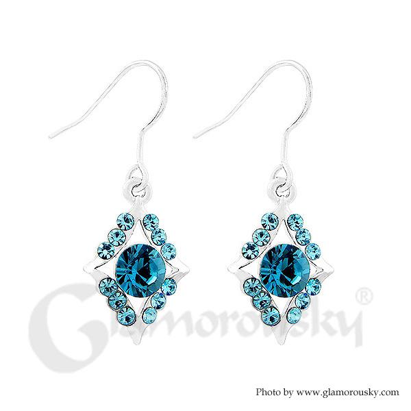 Refined Rhombus Earrings with Blue Austrian Element Crystal