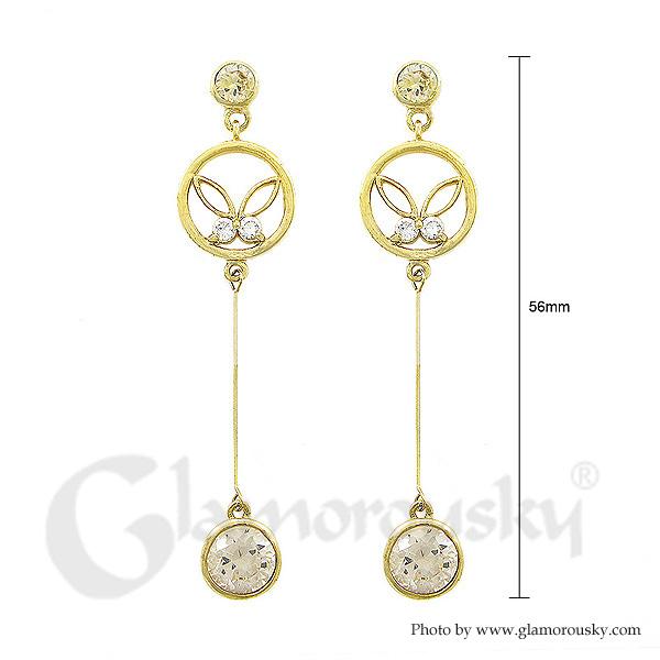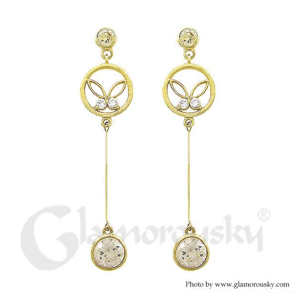Graceful Butterfly Earrings with Silver and Yellow Austrian Element Crystals
