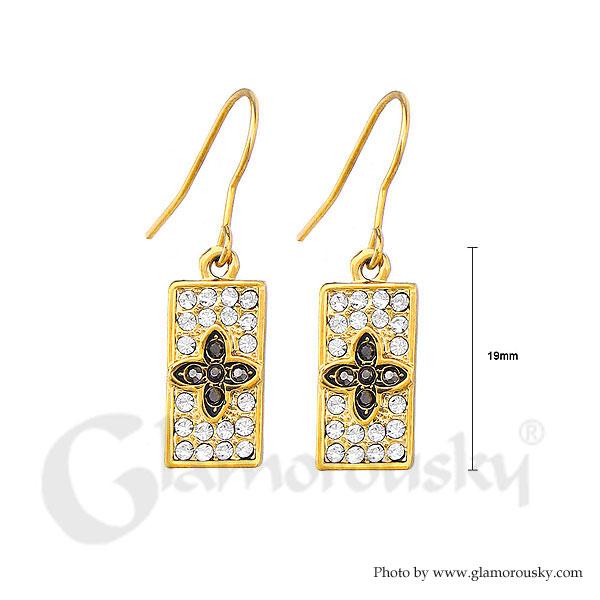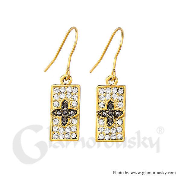 Special Rectangle Earrings with Black and Silver Austrian Element Crystals