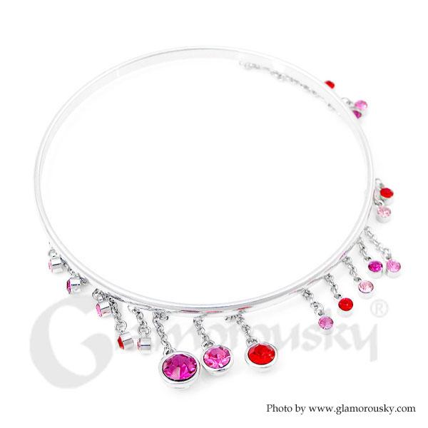 Enchanting Bangle with Pink and Red Austrian Element Crystals