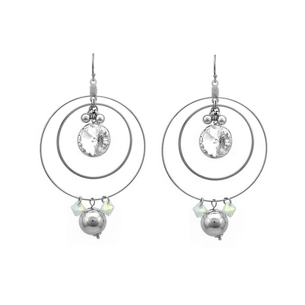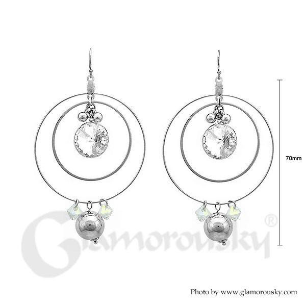 Elegant Round Earrings with Silver Austrian Element Crystal