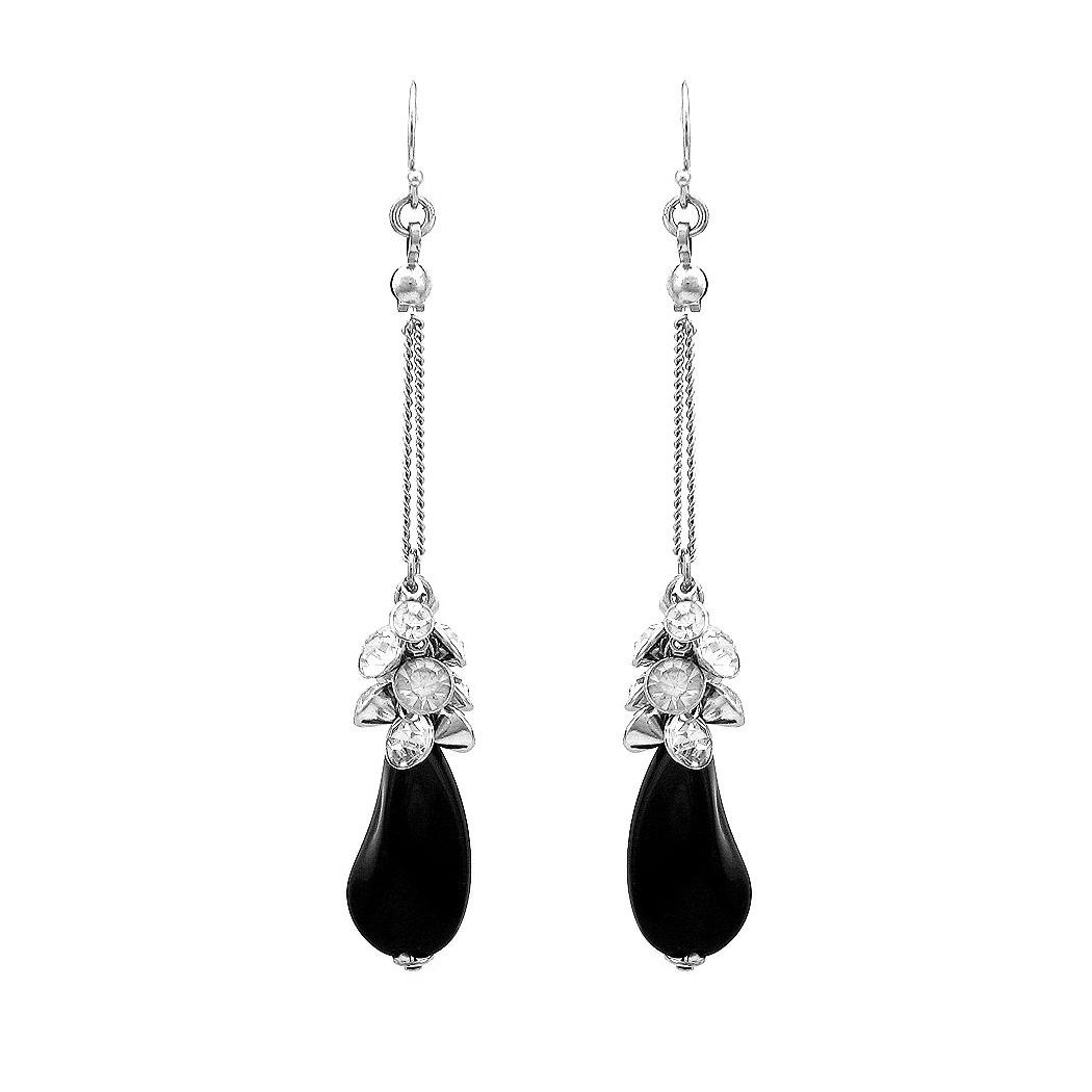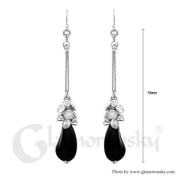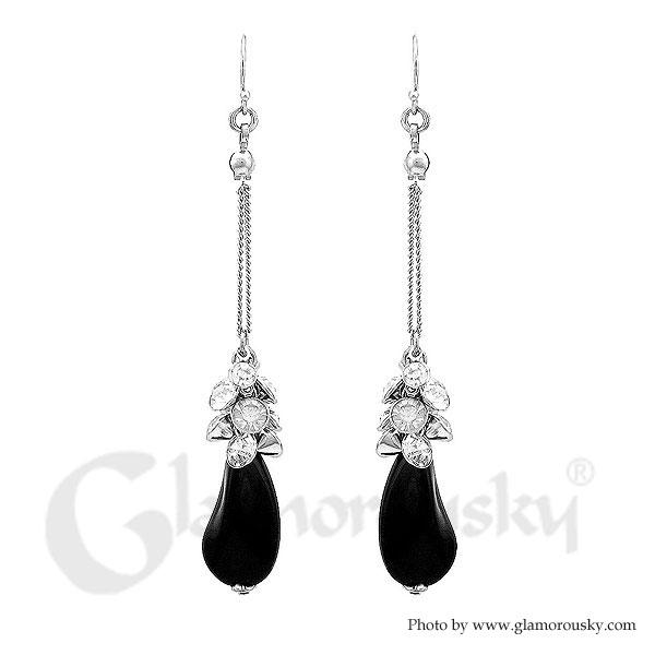 Elegant Earrings with Silver and Black Austrian Element Crystals