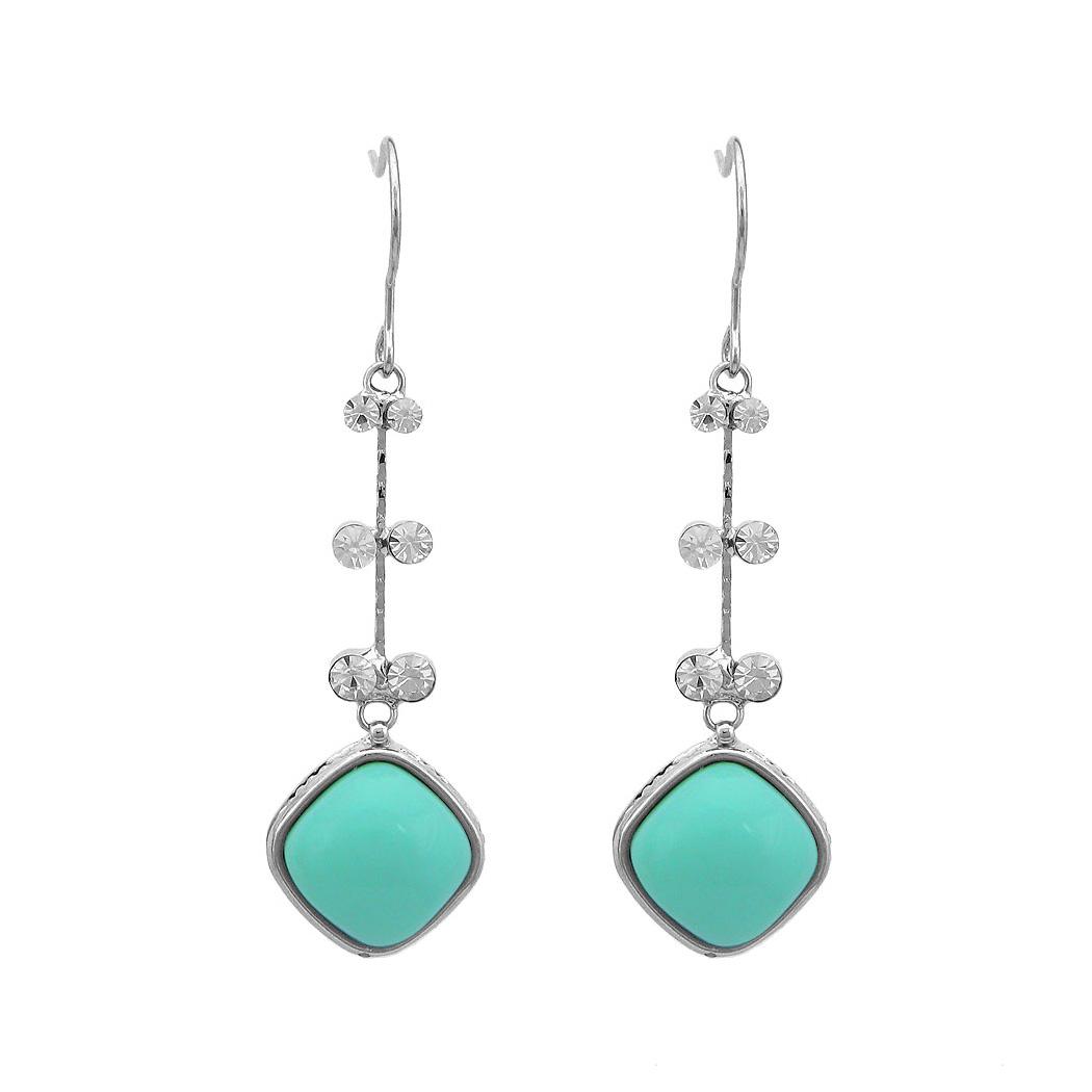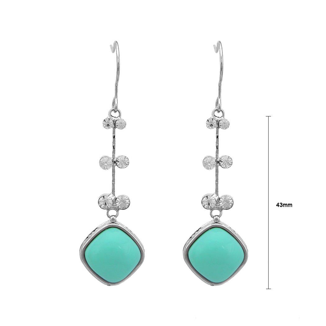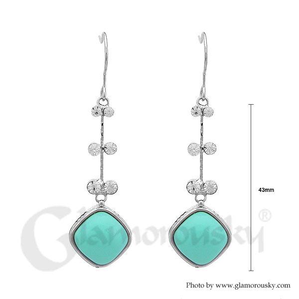 Lovely Green Square Earrings with Silver Austrian Element Crystal