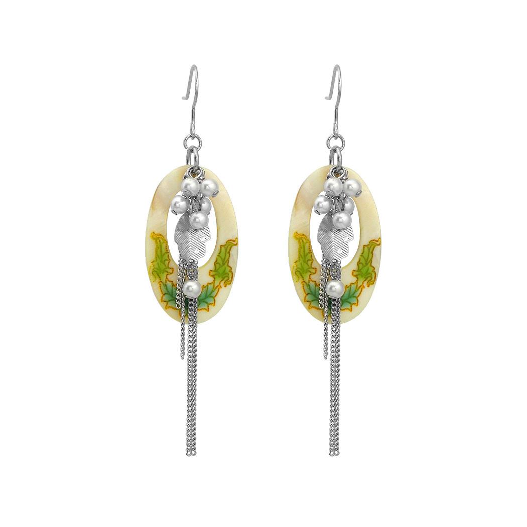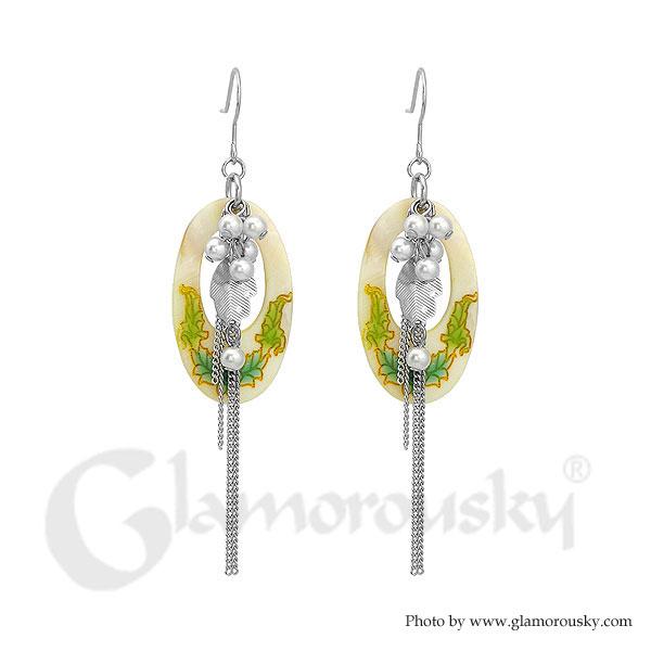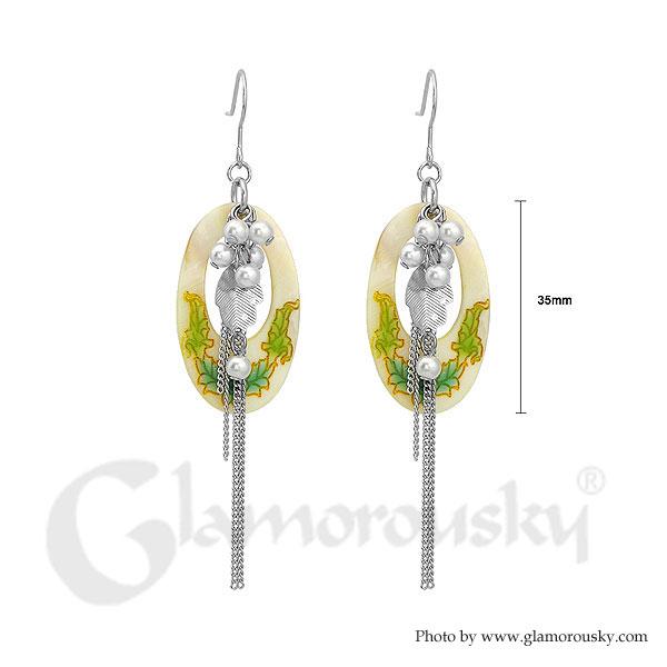 Simple Leaves Earrings with White Fashion Pear
