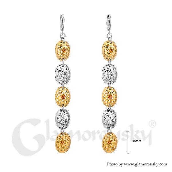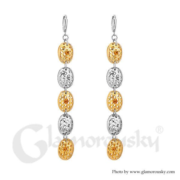 Special Beans Earrings with Silver and Yellow Austrian Element Crystals