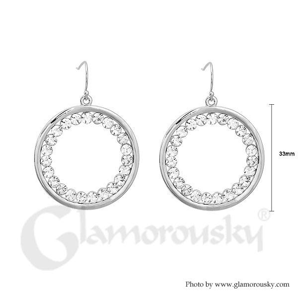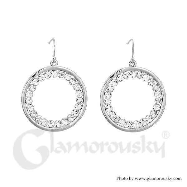 Elegant Round Earrings with Silver Austrian Element Crystal
