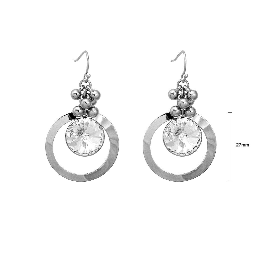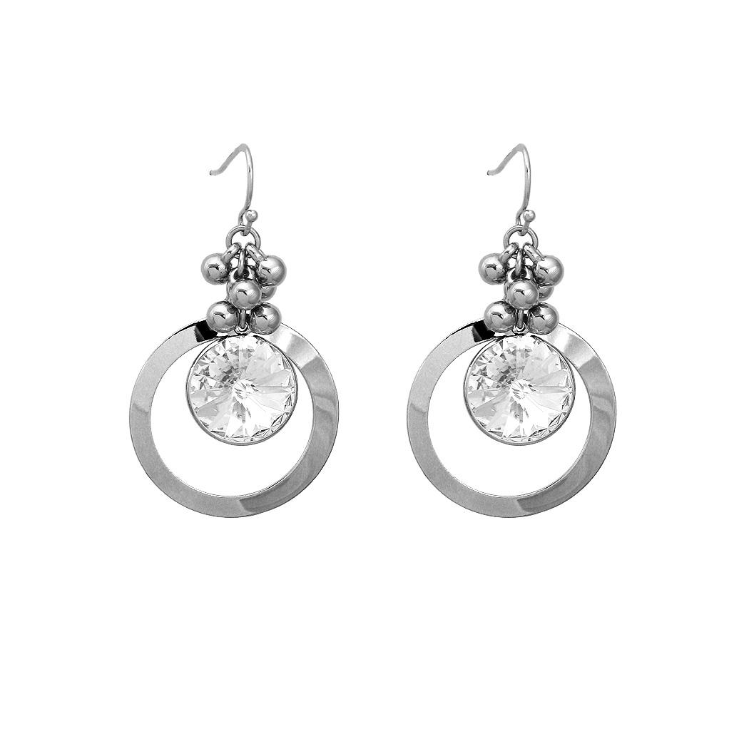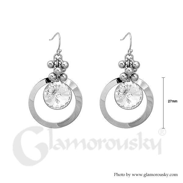Glittering Round Earrings with Silver Austrian Element Crystal