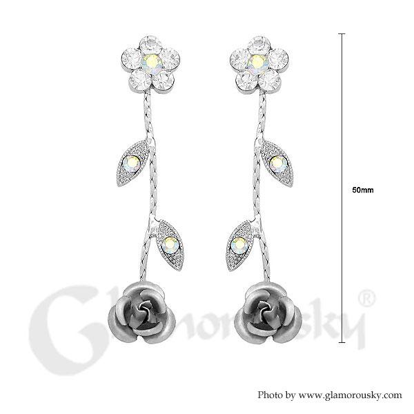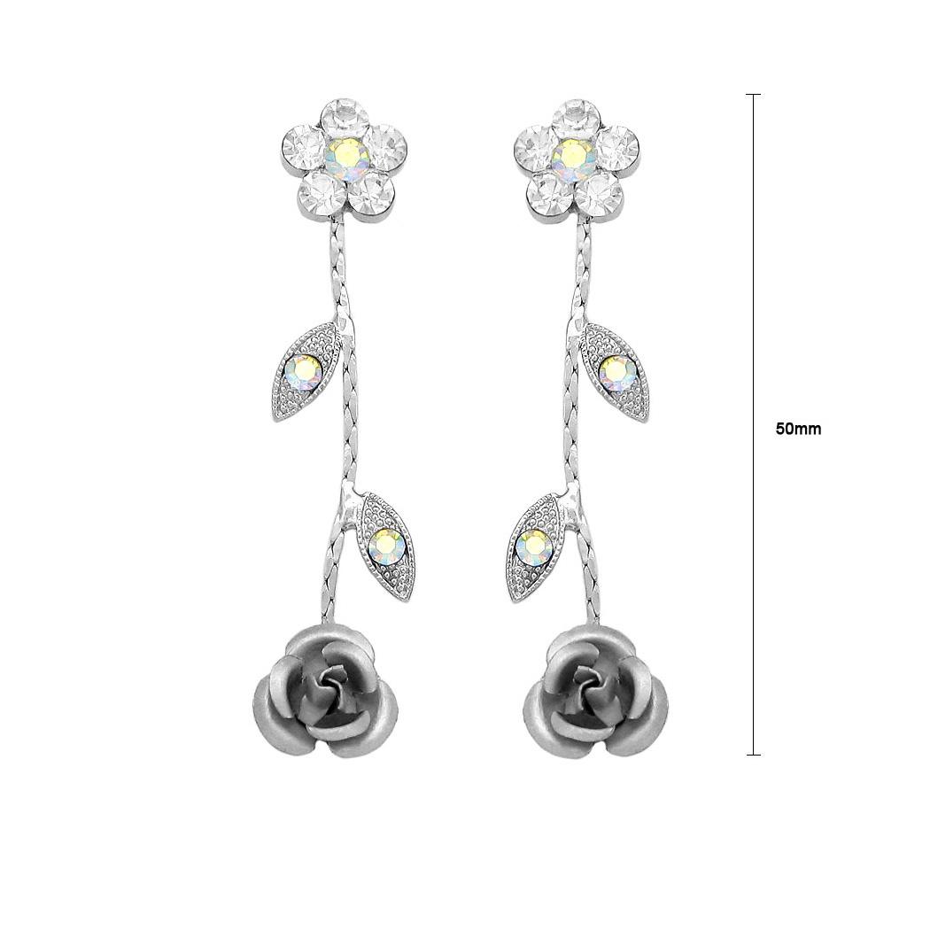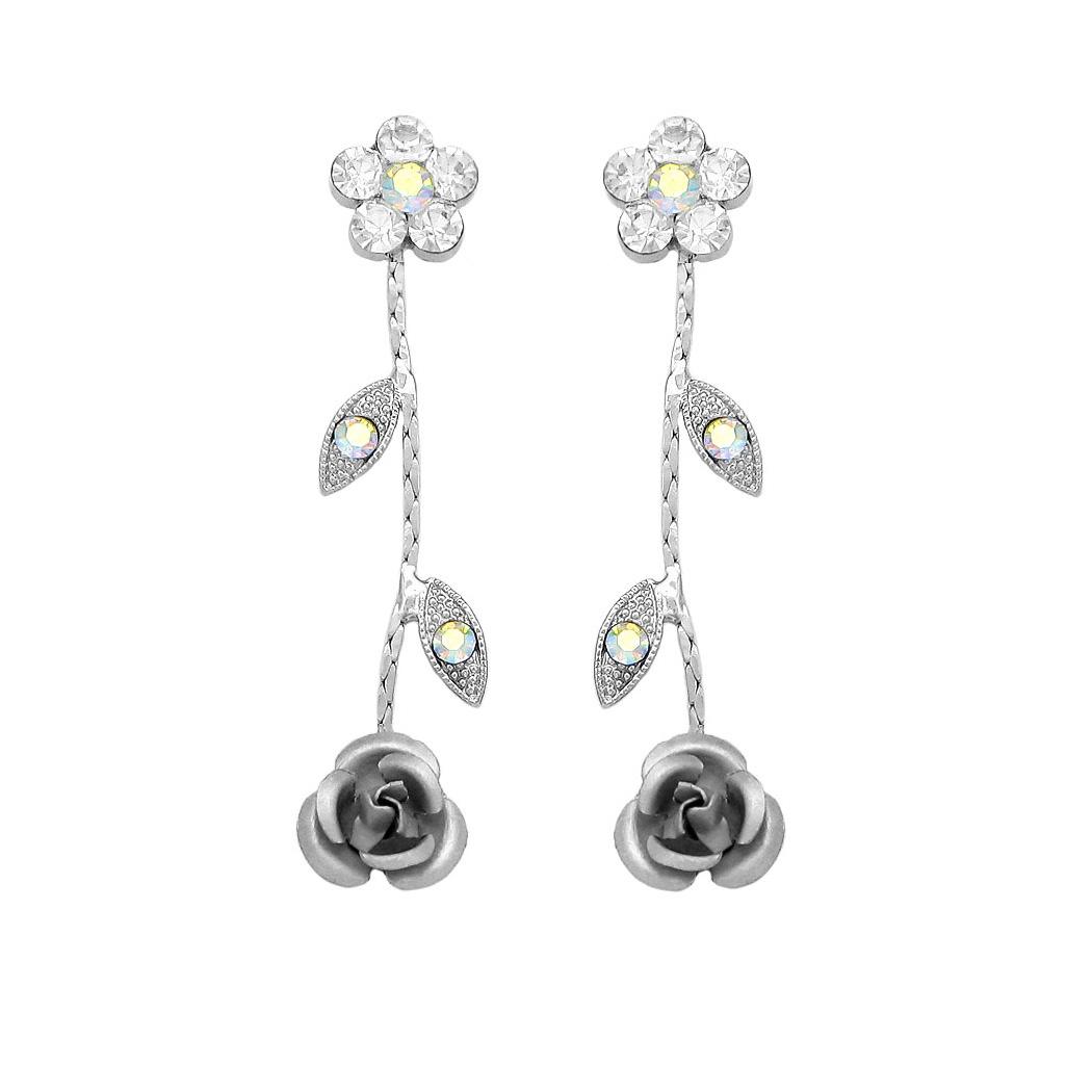 Dazzling Rose Earrings with Silver Austrian Element Crystals